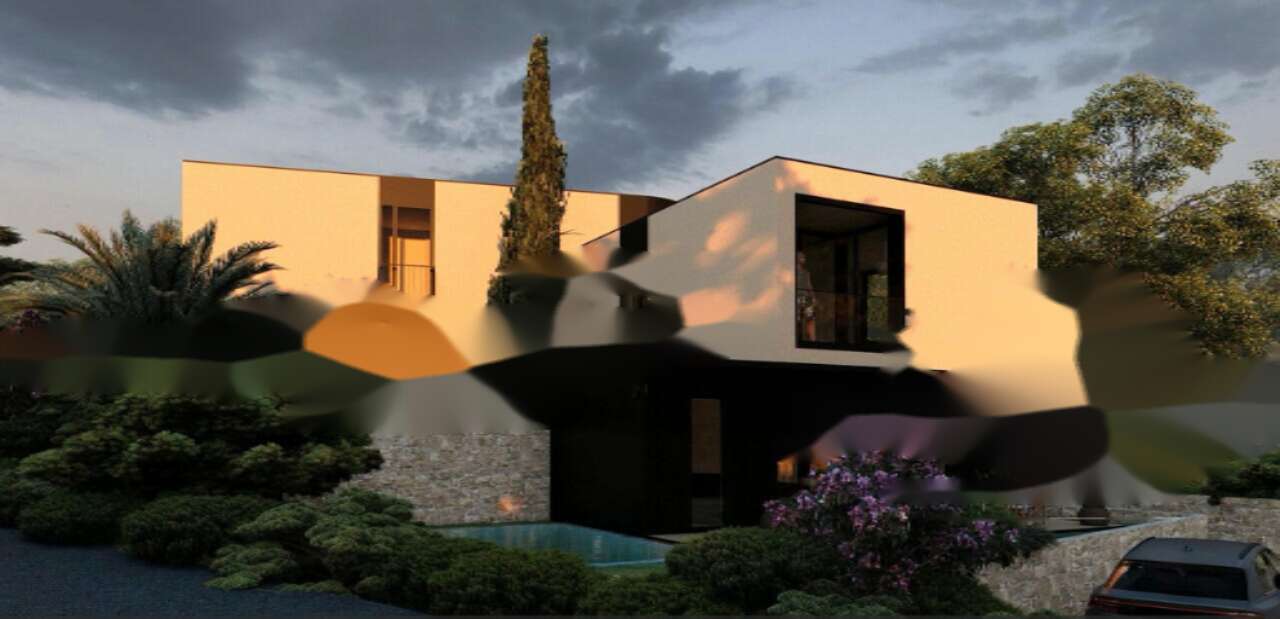 На первом уровне расположены: просторная гостиная, совмещённая с обеденной зоной и кухней, ведущей на террасу с летней кухней, кабинет, ванная комната, прачечная и котельная. Пространство поделено на зоны для вашего удобства 🏠. На втором уровне находятся две спальни с общей террасой, ванная комната и просторная спальня с гардеробной и балконом. Для автомобилей предусмотрены три парковочные места общей площадью 100 м².