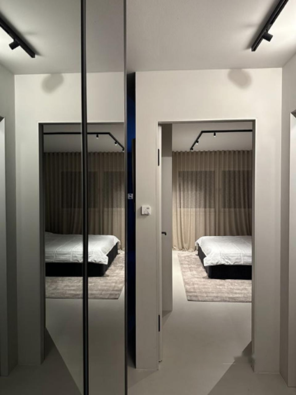 - Просторную спальню с гардеробной и нестандартными обоями;