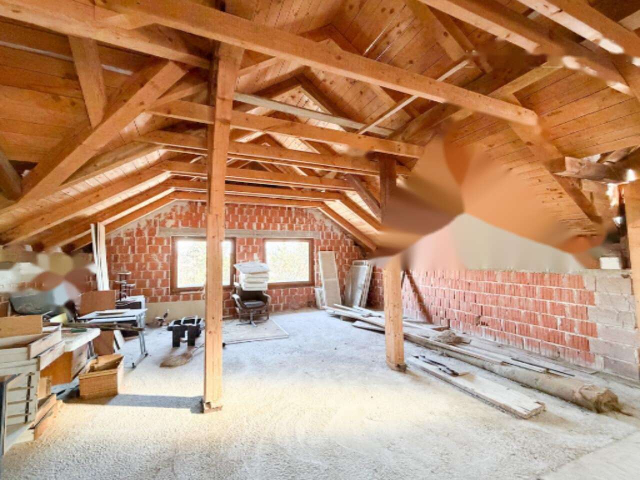 Общая площадь дома составляет 400 м² и включает в себя два этажа. Здесь предусмотрены три спальни, две ванные комнаты, просторный двойной гараж и технические помещения. Часть второго этажа остаётся недостроенной, предоставляя будущему владельцу возможность для реализации своих дизайнерских идей. Кроме того, на территории имеется деревянное подсобное здание площадью 13 м² и дровяной сарай площадью 60 м².