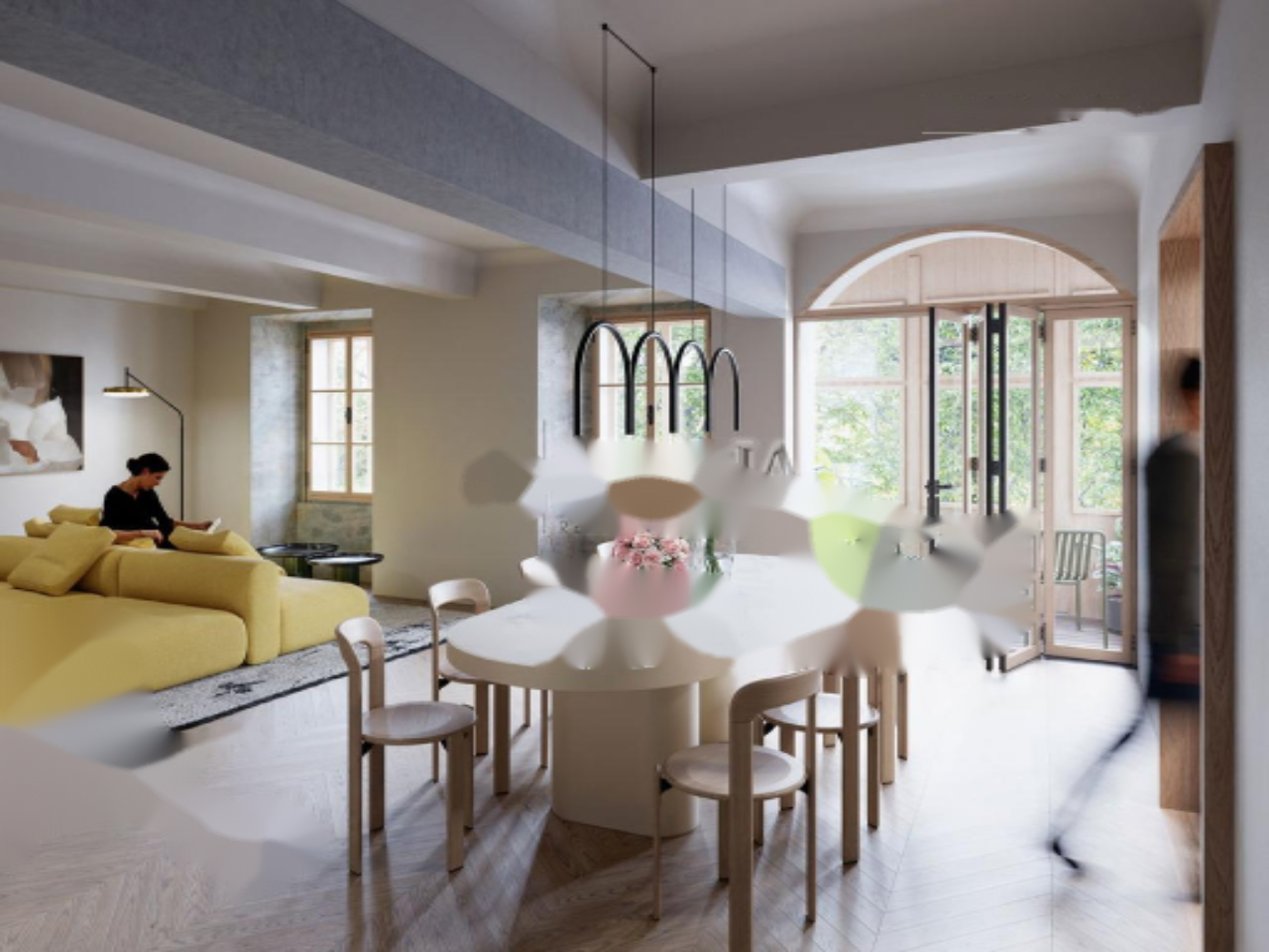 Элегантный вход и оформленный двор гармонично вписываются в историческую среду, предусмотрено пространство для обитателей. К подъезду добавлен новый лифт, планируется реставрация фасадов и установка современных деревянных окон. Внутренняя планировка квартиры обеспечивает оптимальное распределение пространства, сочетая барочную роскошь и модернистскую элегантность. ️