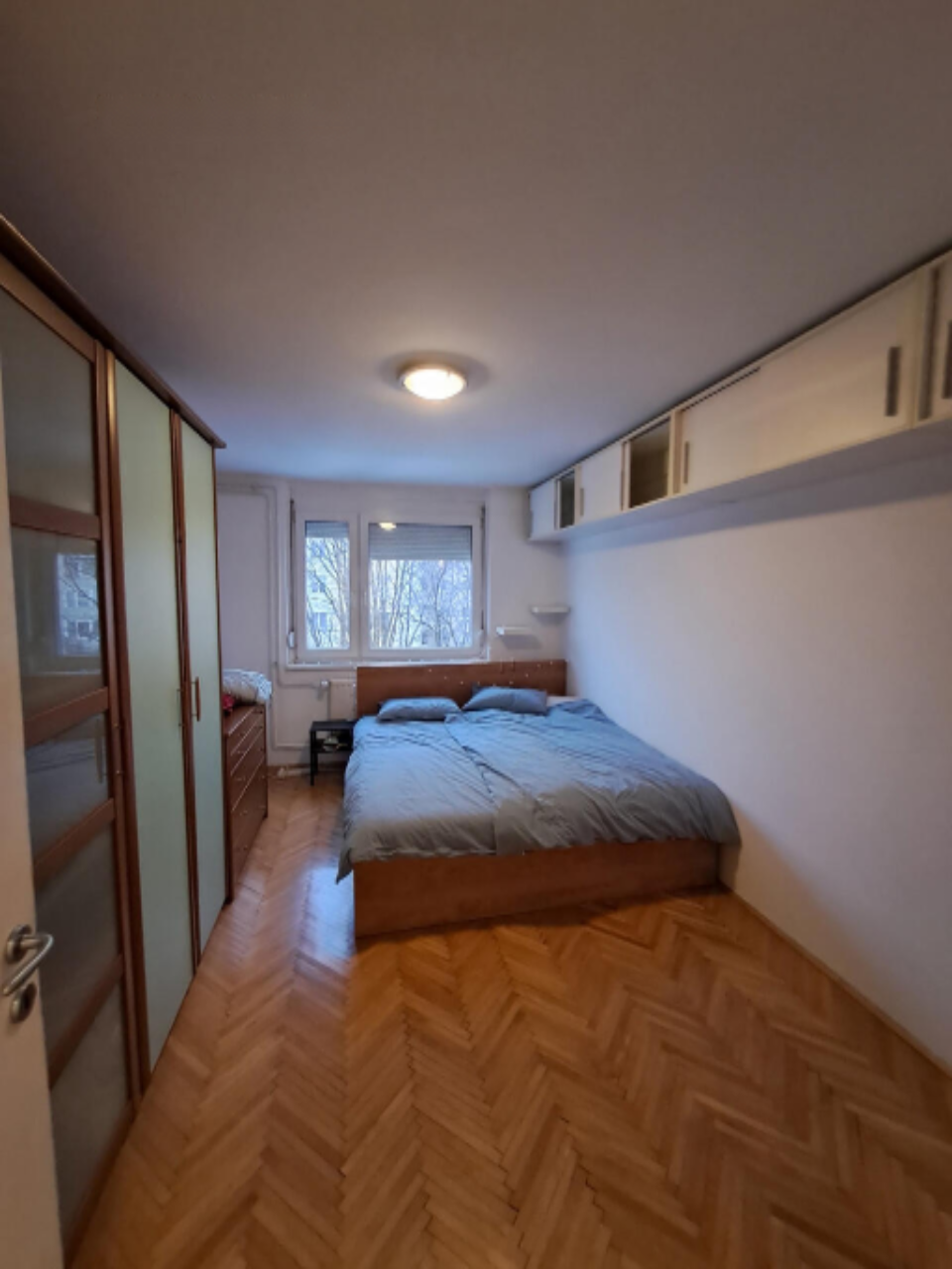 - Спальня, оснащённая большой двуспальной кроватью и необходимыми шкафами