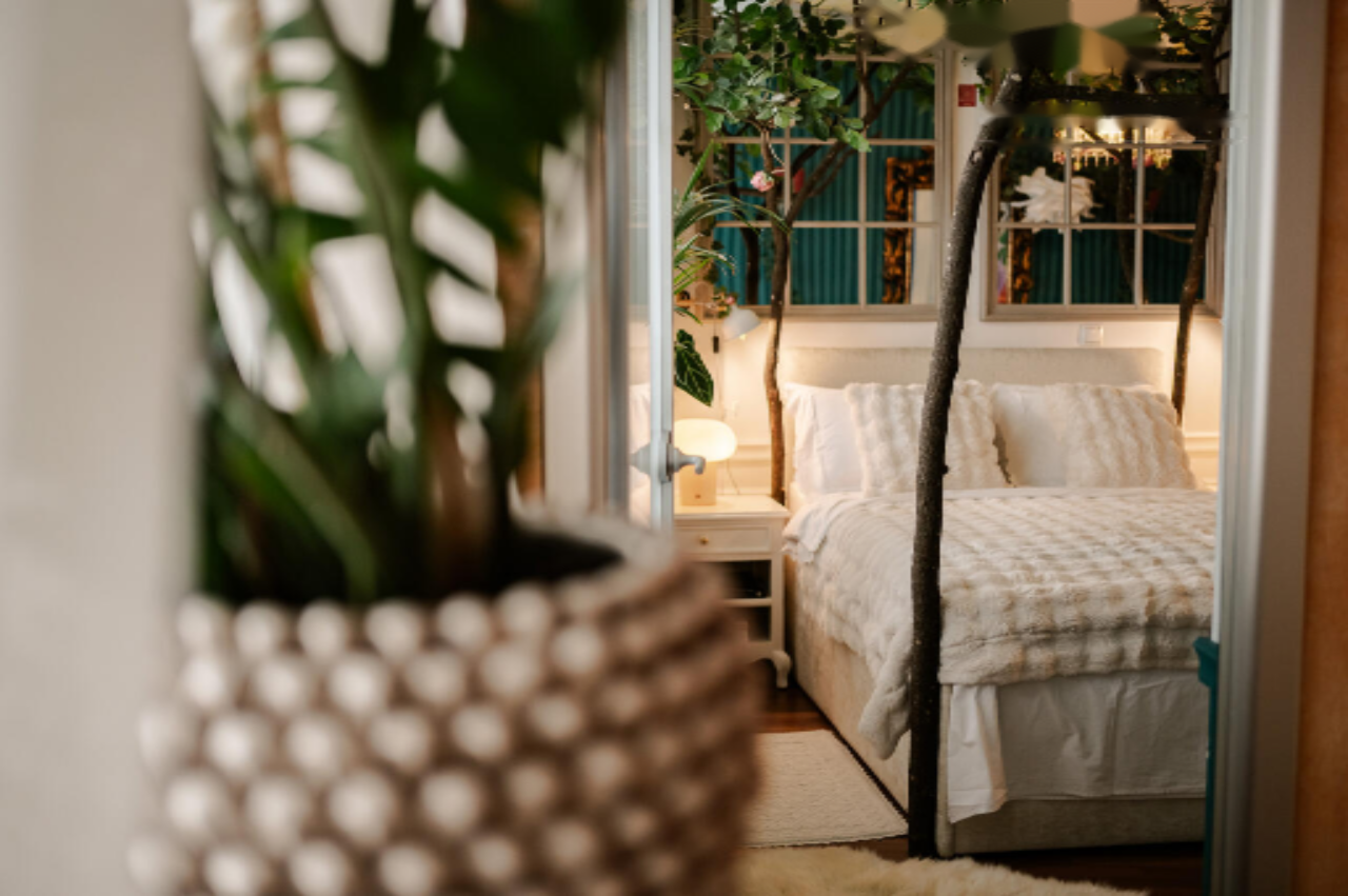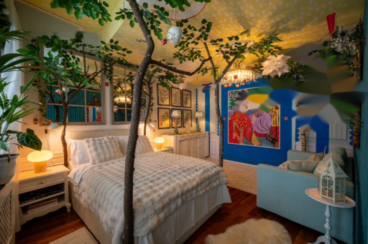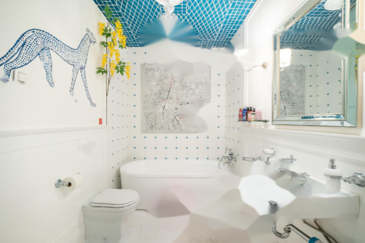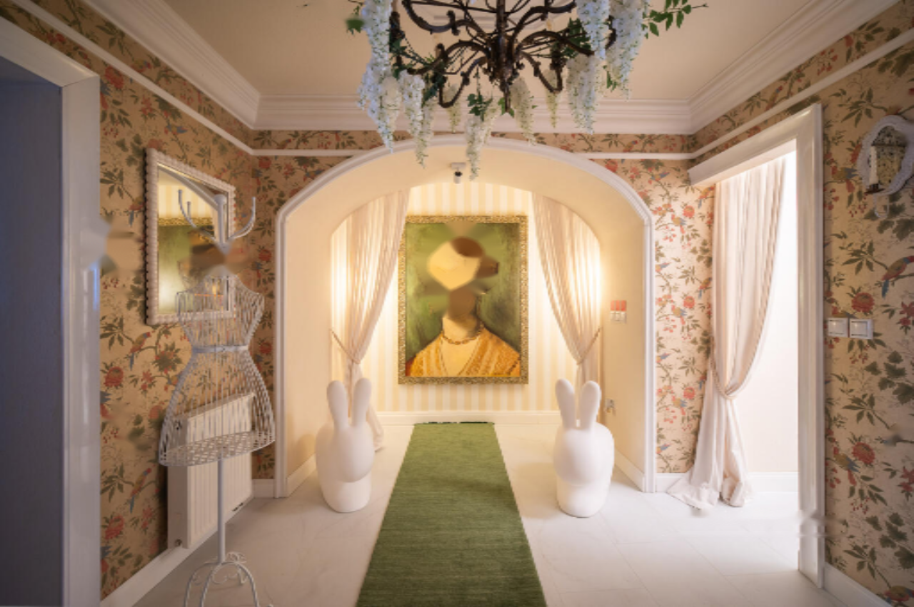 Жильё находится на втором этаже из трёх и охватывает просторные зоны гостиной, столовую и открытую кухню, окна которых выходят на площадь. Три спальни, одна из которых смотрит на зелёный внутренний двор, обеспечивают уединение и комфорт. Светлые и уютные комнаты дополняются высокими потолками, изысканными настенными росписями и тщательно выбранной мебелью.