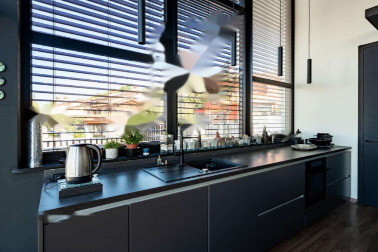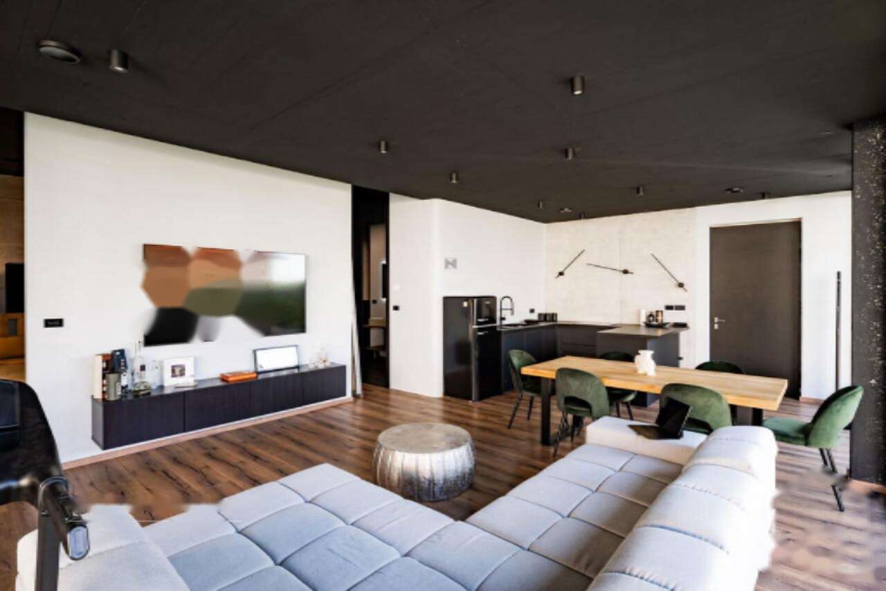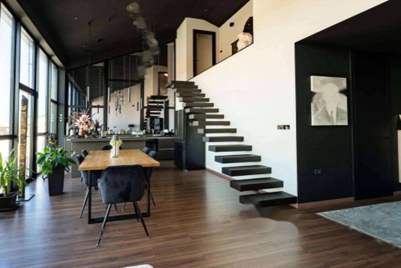 На первом этаже находится уютная трехкомнатная квартира площадью около 70 м², из которой можно выйти на террасу, оборудованную джакузи и садовой мебелью, с выходом в зеленую зону или атрий. Дополниет этот уровень отдельный студийный блок площадью 47 м², который прекрасно подходит для приема гостей или сдачи в аренду. На нижнем уровне предусмотрено удобное парковочное место для четырех автомобилей.