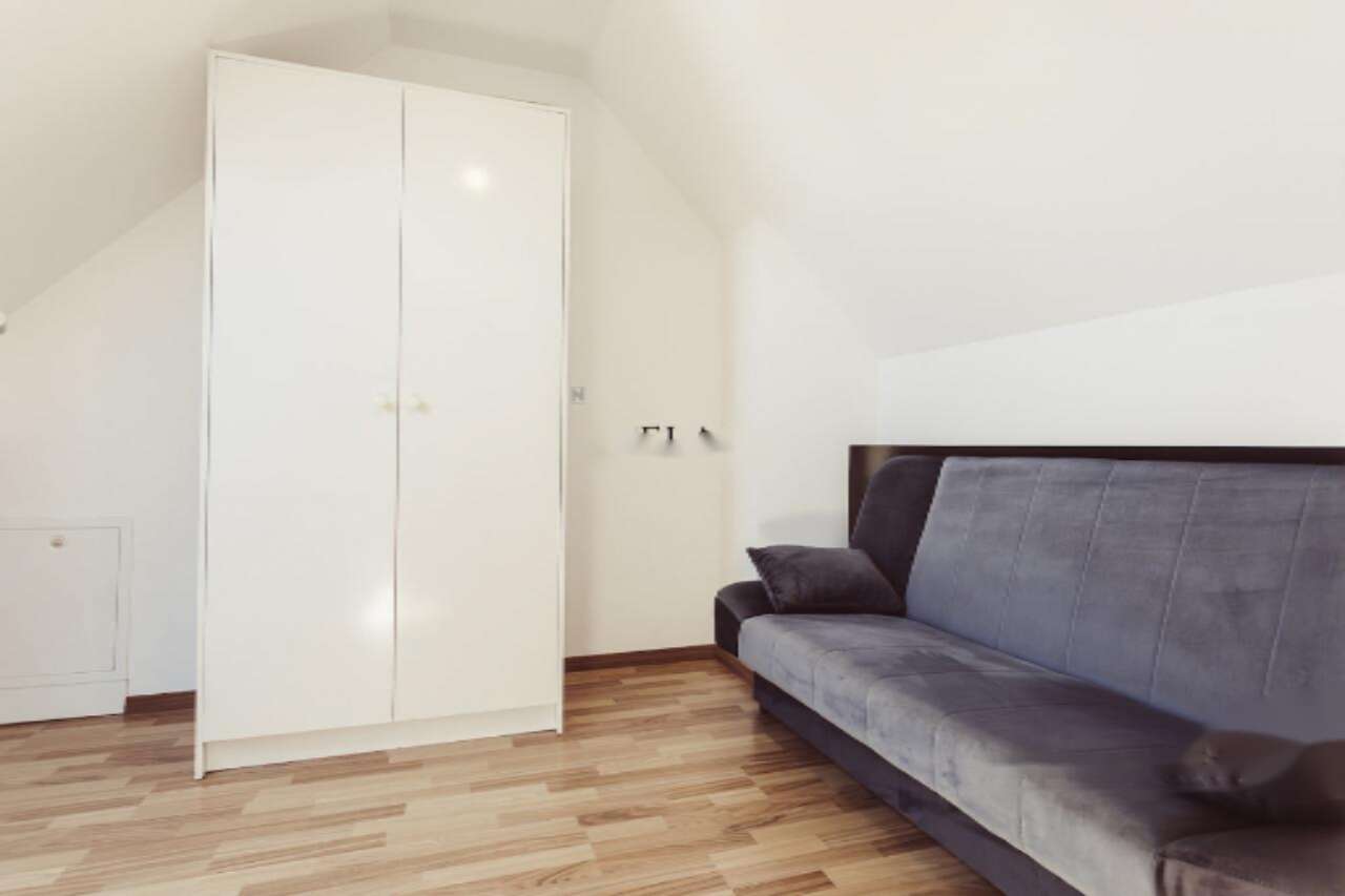 • Мансарда используется эффективно и предлагает две дополнительные комнаты, к которым ведёт кирпичная лестница.