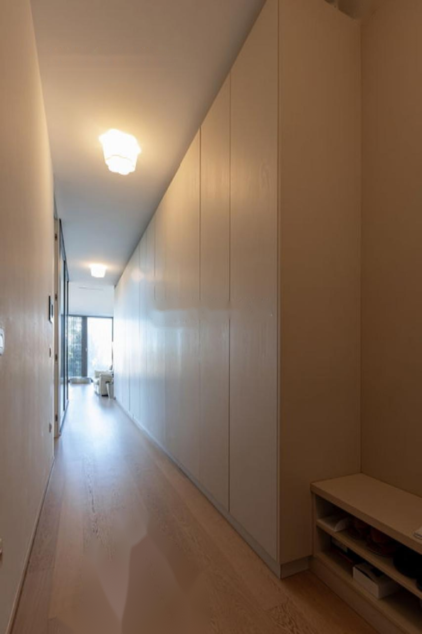 Эффективно организованное пространство включает в себя гостиную с обеденной зоной и кухню, спальню, кабинет, а также ванную комнату с туалетом. Удобство проживания дополняет эксклюзивная внутренняя терраса площадью 10,8 м² и вместительное помещение для хранения размером 6,7 м². В стоимость входят два частных места на подземной парковке для вашего комфорта.