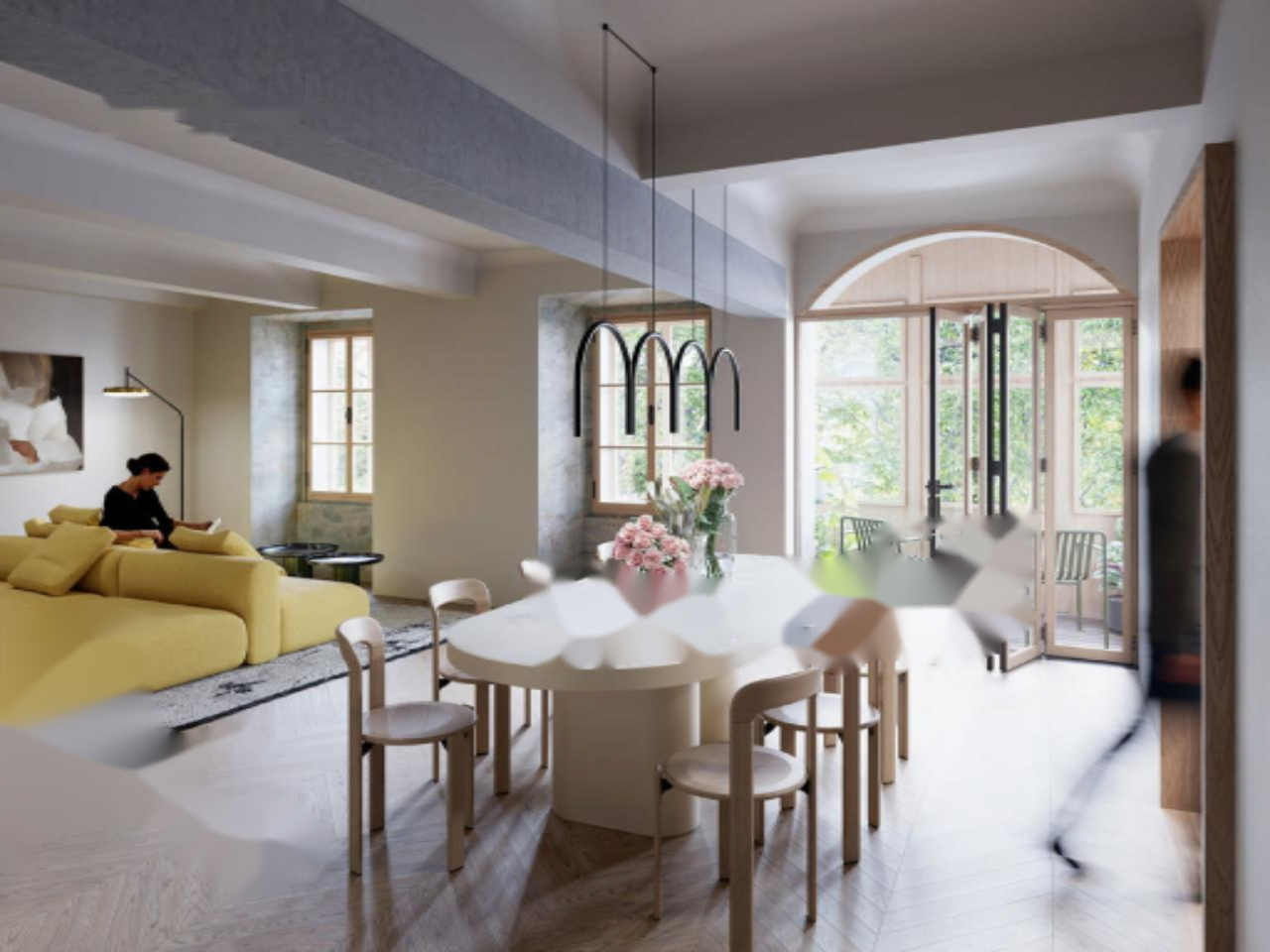 Квартира удачно сочетает в себе барочные архитектурные элементы и современные удобства. Планировка помещений включает: прихожую с местом для хранения, две спальни, гардероб, две ванные комнаты, гостиную с зоной для обедов, кухню, кабинет и гостевой санузел. Для обогрева предусмотрена конденсационная газовая котельная с регулировкой температуры в каждой комнате, а для охлаждения — кондиционер и система рециркуляции воздуха. Умные системы управления позволяют дистанционно контролировать отопление, освещение и вентиляцию.