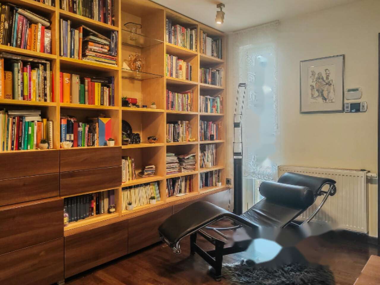 Главный фасад дома обращен на юг, позволяя солнечному свету свободно наполнять помещения. На первом этаже находятся гостиная, кухня, столовая с выходом на сад и ванная. На втором этаже вы найдете две спальни с выходами на балкон, обширный кабинет, который при желании можно преобразовать в одну или две спальни, библиотеку и ванную . В подвале оборудованы кладовая, техкомната, туалет с раковиной и гостевая спальня с окнами.