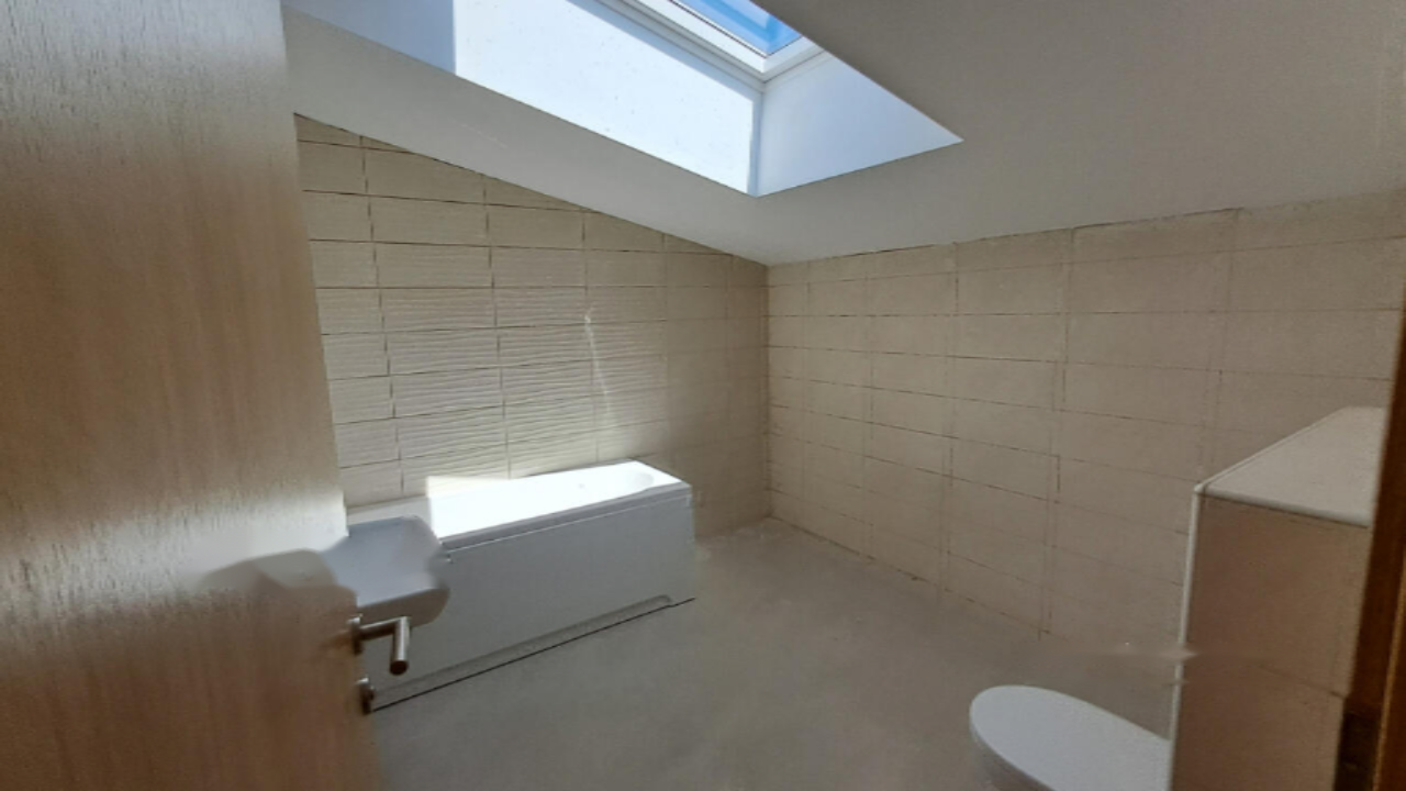 Вход в квартиру осуществляется с первого этажа, где вас приветствует просторная L-образная комната, объединяющая кухню, столовую и гостиную. Здесь также есть гостевой санузел, котельная и выход на большую внешнюю террасу с встроенной кладовой. Второй уровень будет вашим уютным убежищем с тремя спальнями, двумя ванными и дополнительной кладовой, а также небольшой личной террасой. Мансардные помещения с высокими потолками добавляют пространству особый шарм.