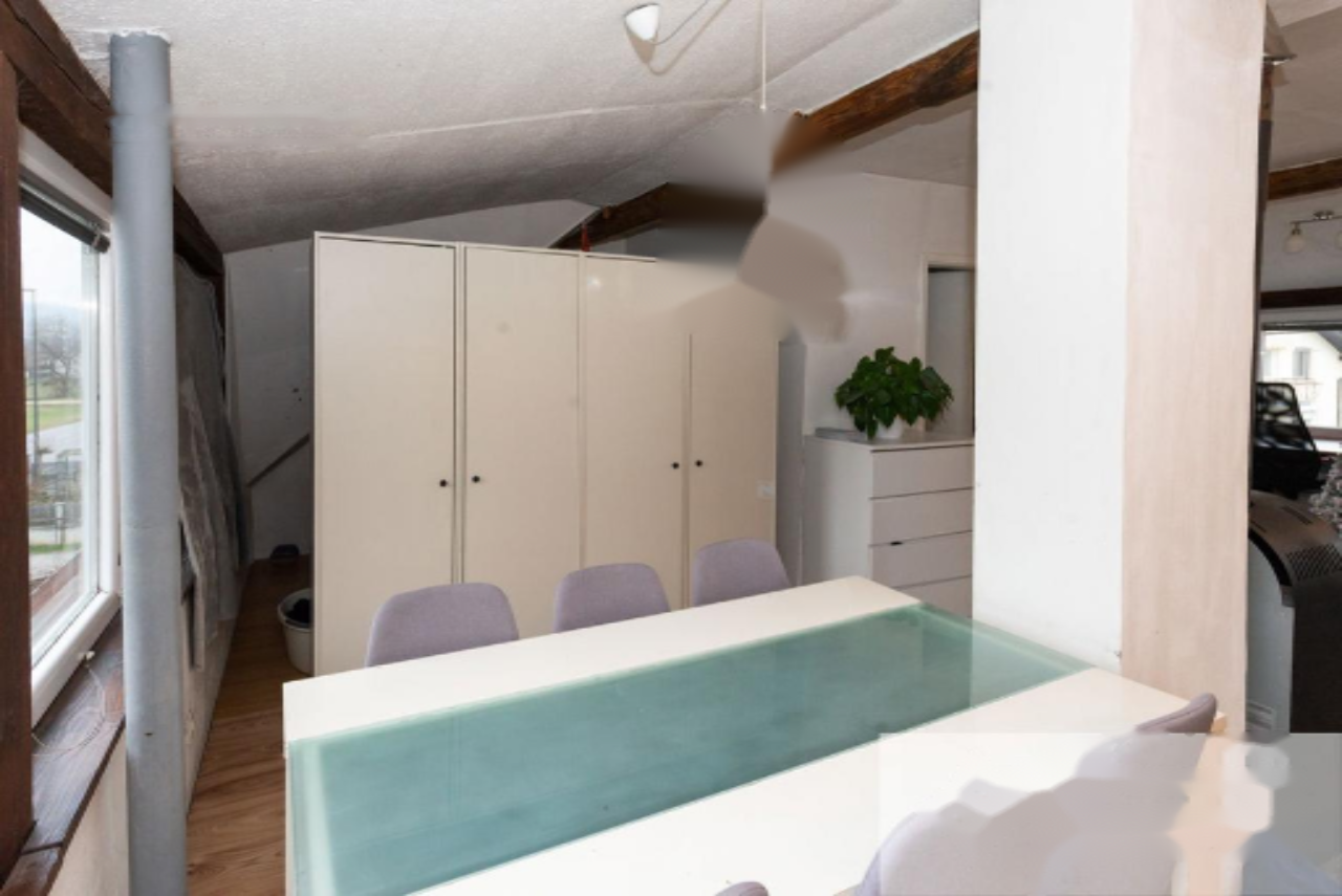 На первом этаже вы найдёте прихожую, кухню с обеденной зоной, ванную комнату, отдельный туалет и гостиную. Верхний этаж имеет аналогичную планировку. Мансарда представляет собой открытое пространство с новой ванной комнатой и спальней, отделённой шкафом️. Деревянные потолки придают особую атмосферу, а обновленная крыша от 2010 года гарантирует долговечность. Установлены системы обогрева и охлаждения: электрические радиаторы, кондиционеры и дровяной камин в мансарде.