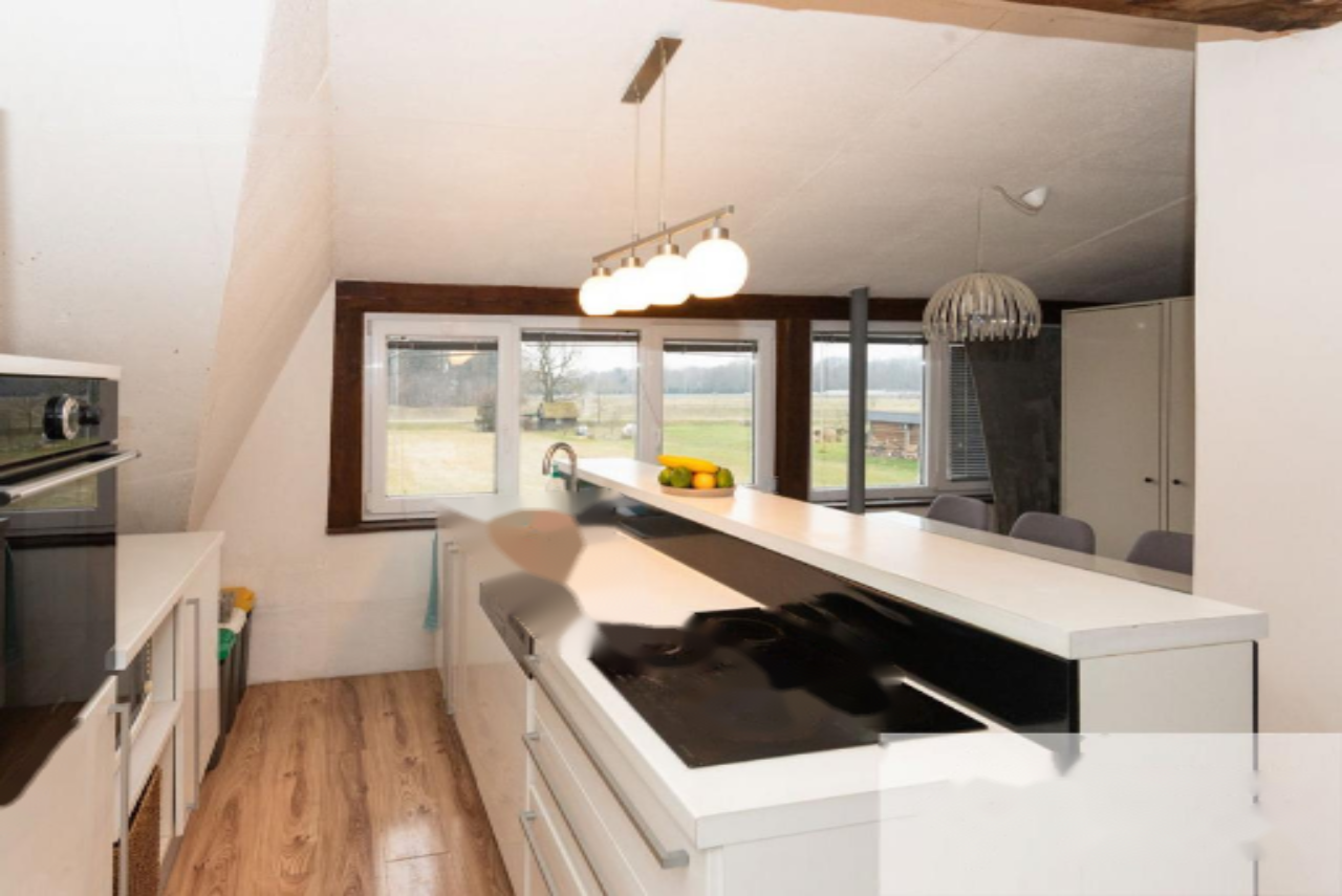 На территории также имеется 80 м² вспомогательное сельскохозяйственное строение и мощёная плиткой площадка, включая место для парковки семи автомобилей. Кухня смотрит на восток, сад находится на южной стороне, а парковка — на северной. Участок подключен к газопроводу, что позволяет установить тепловой насос.