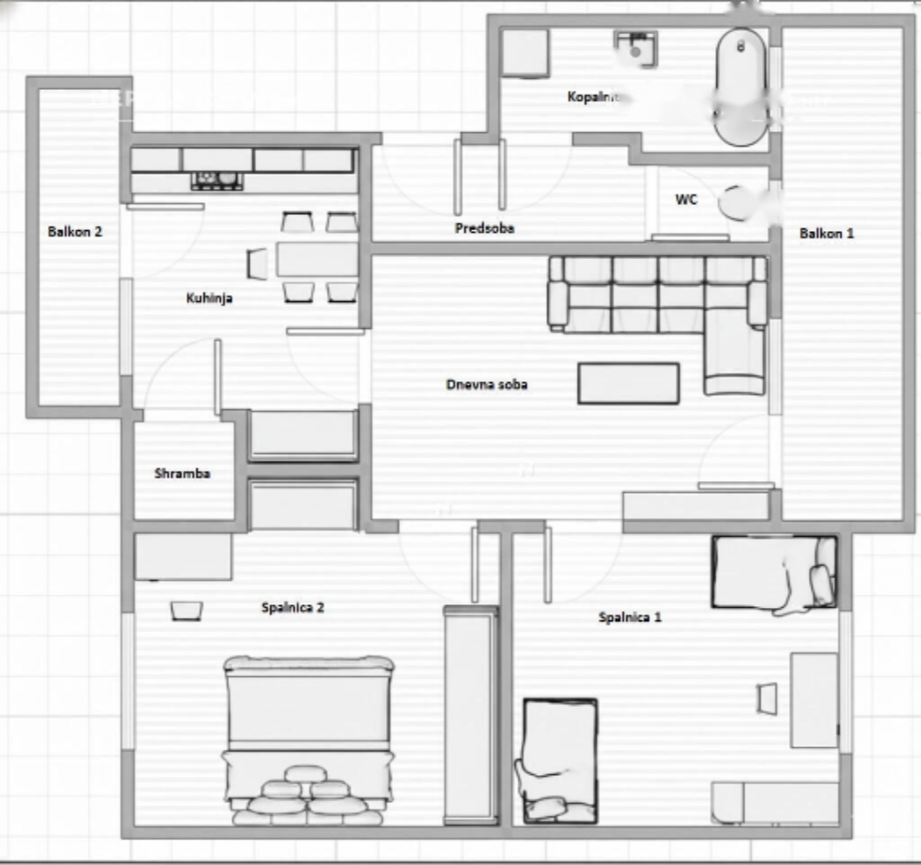 Предлагается благоустроенная трехкомнатная квартира в районе Верхняя Шишка, Любляна. Жилье находится на третьем этаже малоэтажного здания, возведенного в 1957 году, и имеет общую площадь 95,5 м², из которых 68,5 м² занимает жилая территория.