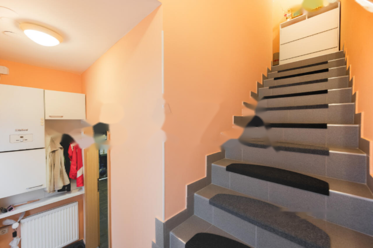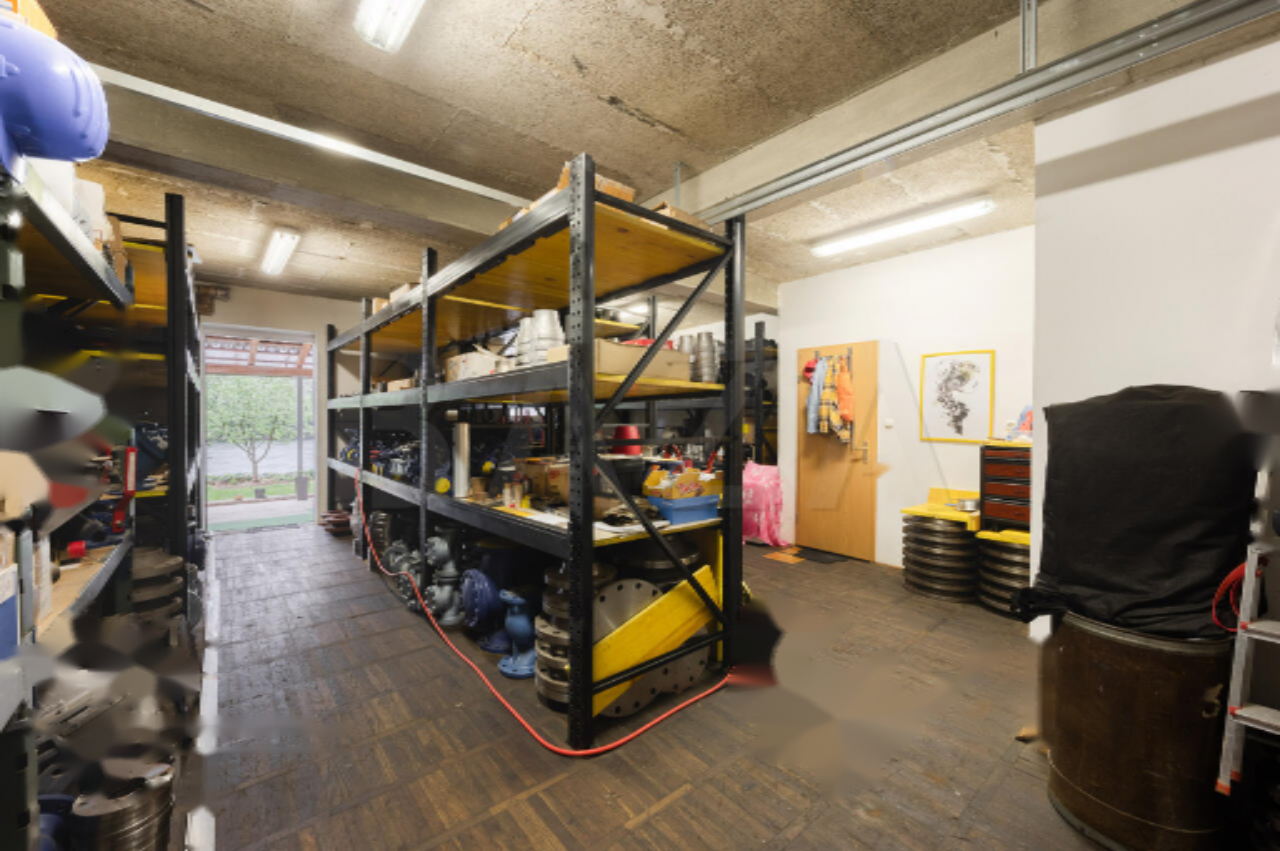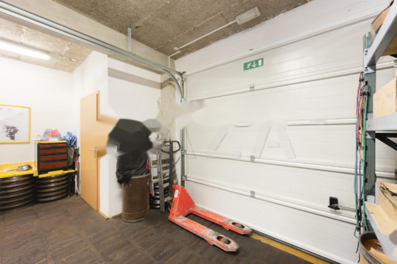 Это рядное строение расположено в индустриальной зоне города, недалеко от реки Любляницы. Конструкция здания позволяет использовать площади как под производственные и складские нужды, так и для офиса. Мансарда оформлена как жилое пространство с двумя комнатами, включающими спальню, ванную, гостиную с кухней и столовой.