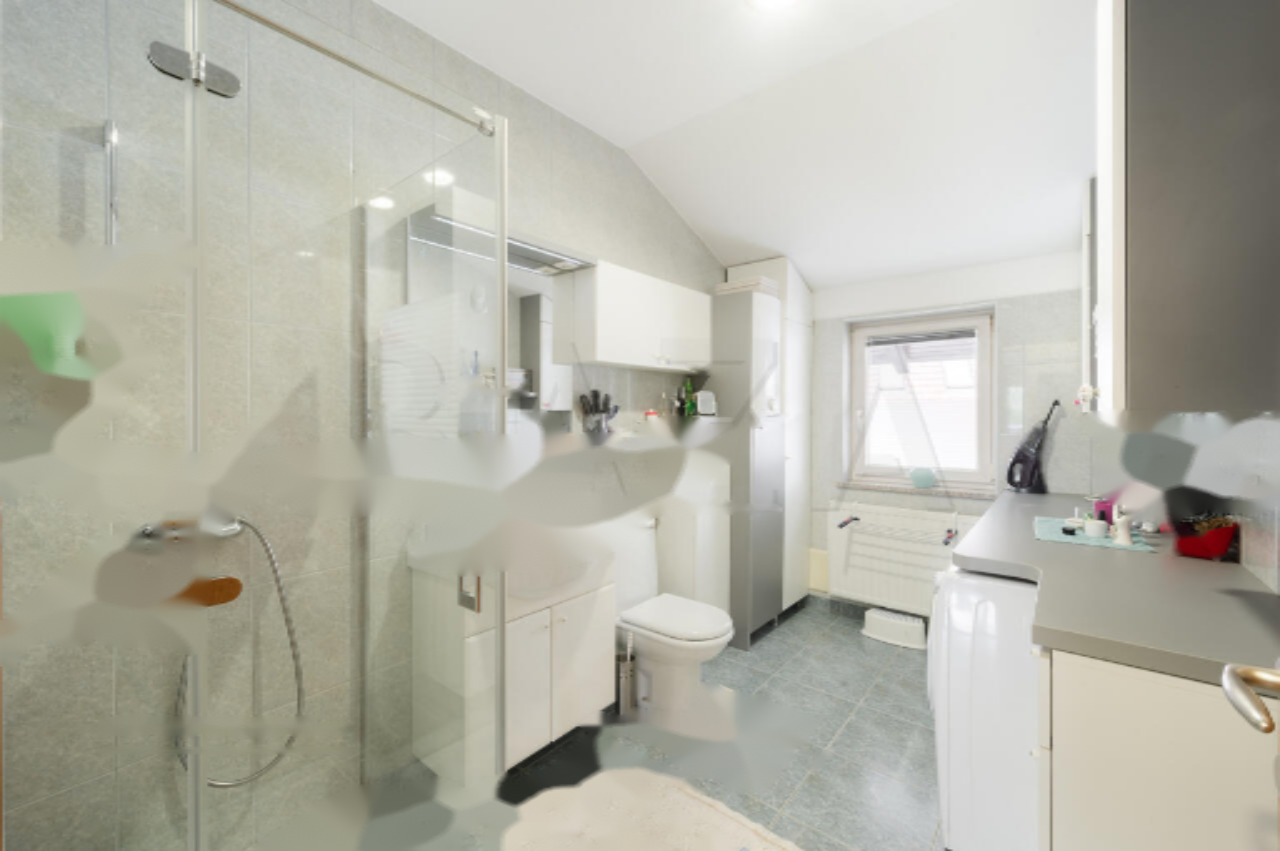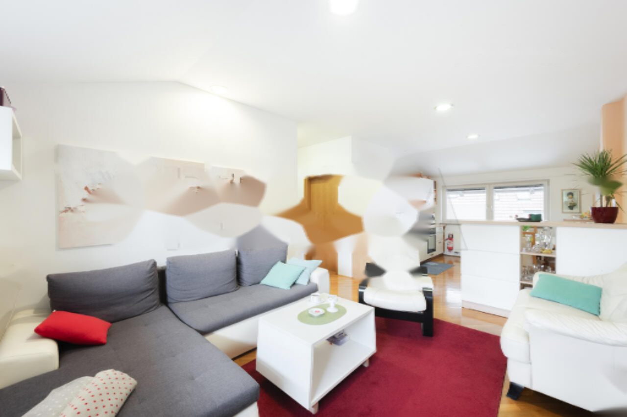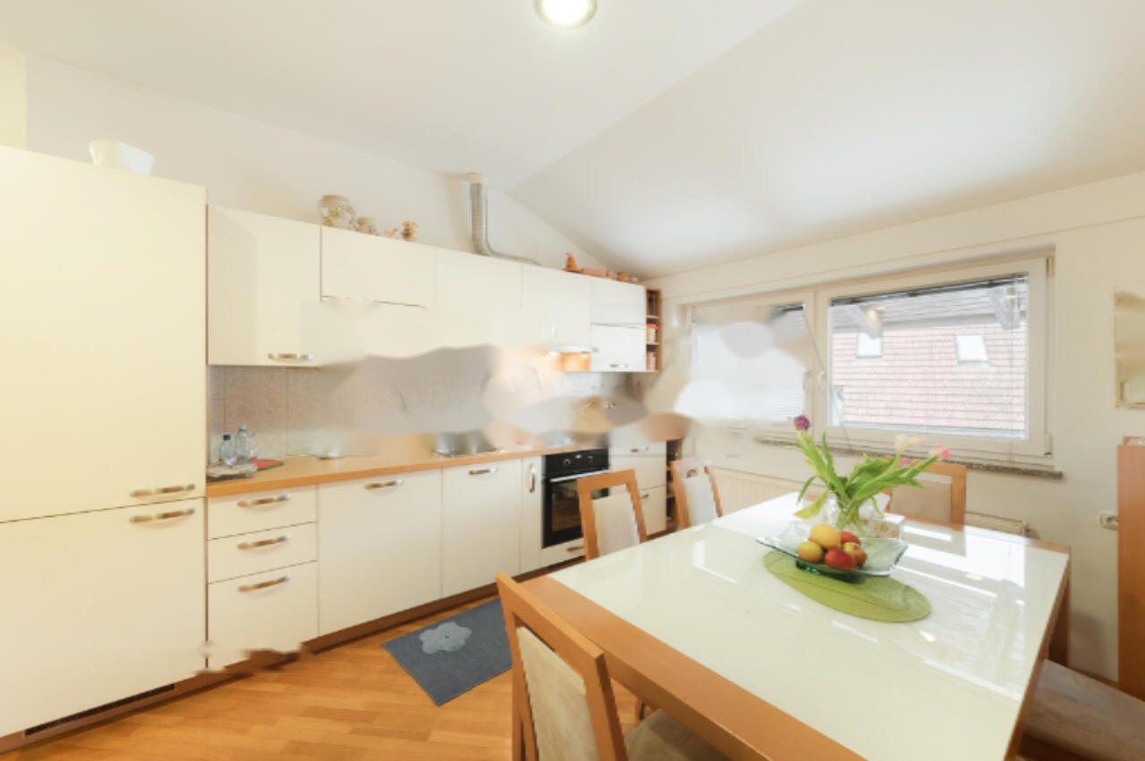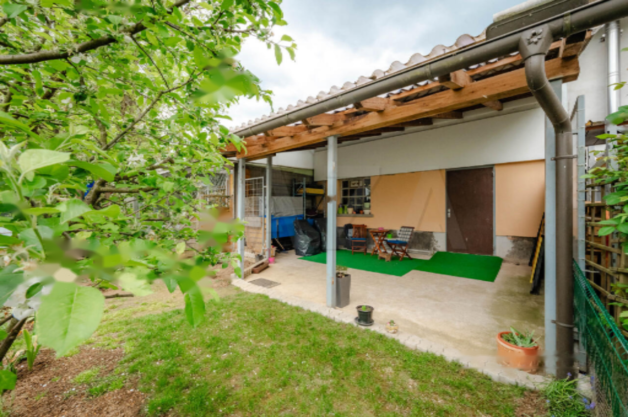 Это рядное строение расположено в индустриальной зоне города, недалеко от реки Любляницы. Конструкция здания позволяет использовать площади как под производственные и складские нужды, так и для офиса. Мансарда оформлена как жилое пространство с двумя комнатами, включающими спальню, ванную, гостиную с кухней и столовой.