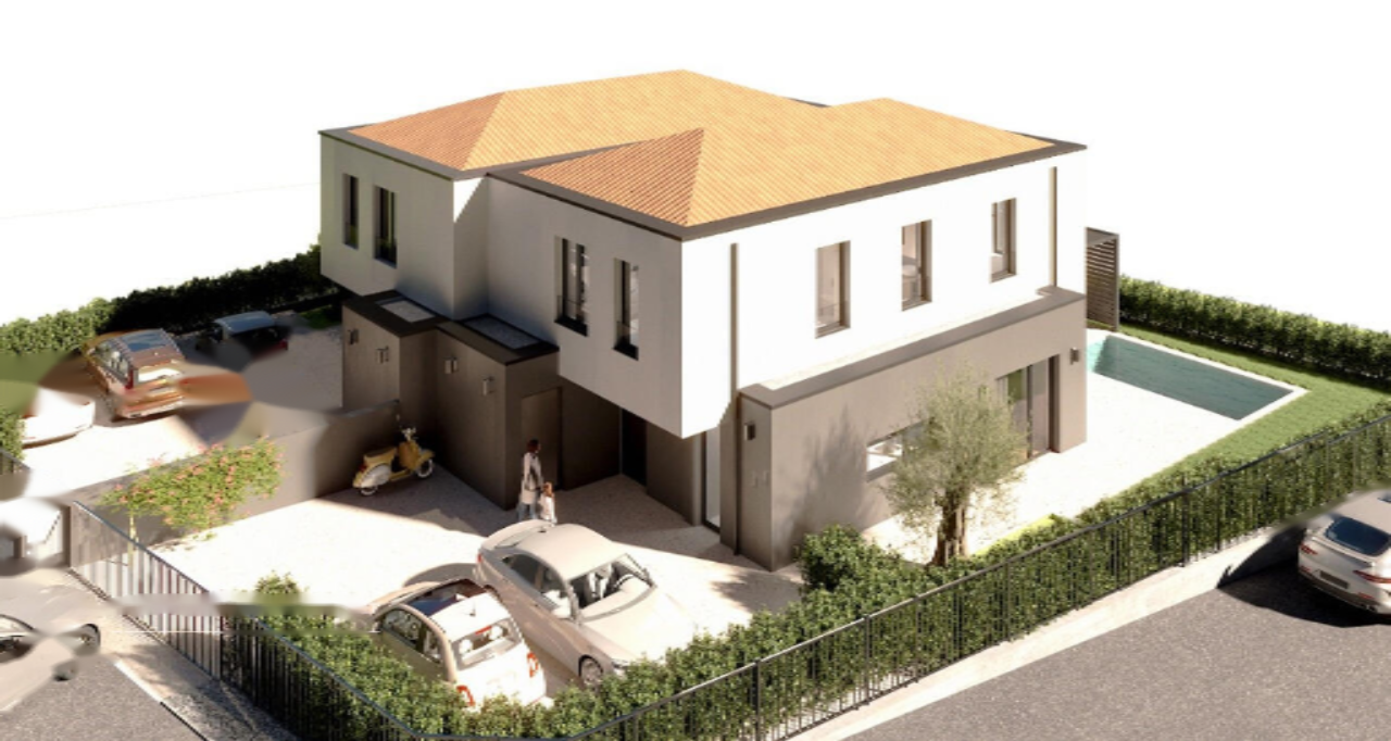 Дом выполнен в зеркальном проекте, с отдельным входом каждого блока с северной стороны. Из гостиной можно попасть на южную террасу, где предусмотрены летняя кухня и бассейн. Светлый и просторный жилой уровень включает кухню, обеденную зону и гостиную с выходом на террасу. Второй этаж предлагает две спальни, из которых главная имеет собственную гардеробную и ванную, а также дополнительную ванную комнату.