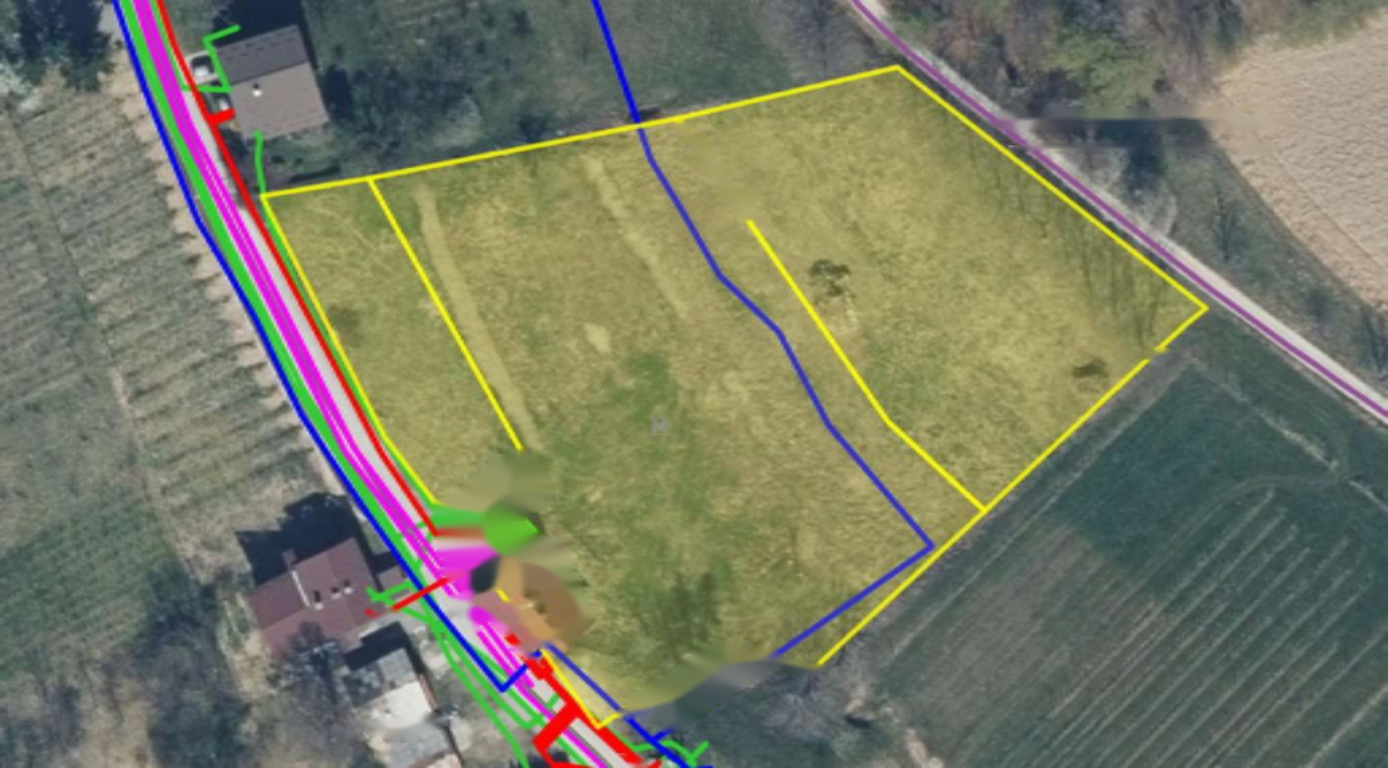 Недвижимость расположена на краю поселка с открытым видом на восток. Участок разделен на две части: верхняя, где находится старый дом, предназначется под застройку, в то время как остальная часть задействована как сельскохозяйственная земля. Территория тянется от асфальтированной дороги вниз по склону, создавая пространство как для жилья, так и для сельскохозяйственных нужд. Вблизи имеются подключение электричества и водоснабжения.