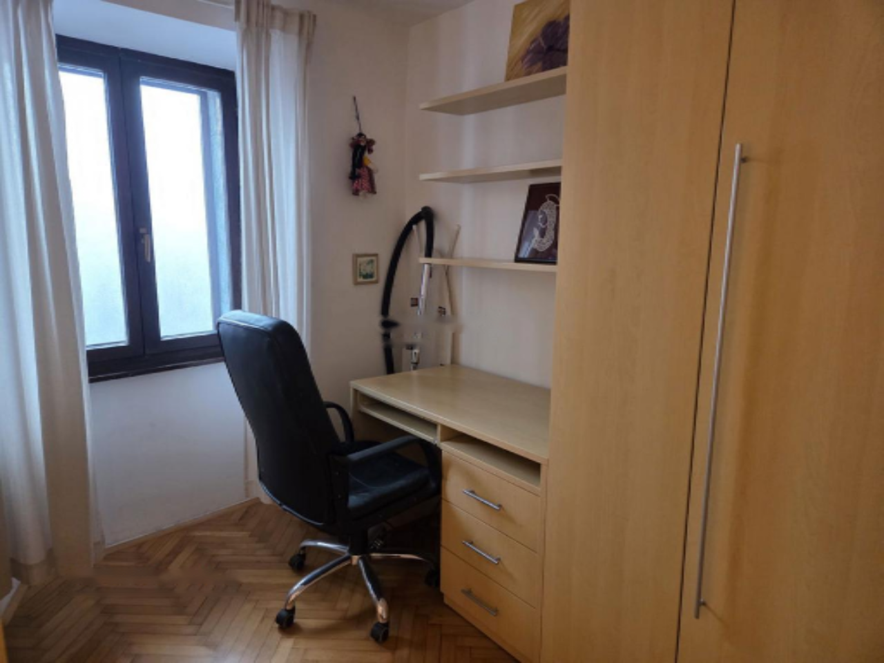 Из окон квартиры открывается захватывающий вид на живописные городские улицы. На верхнем этаже расположена общая терраса, доступная для всех жителей дома. К данной квартире также прилагаются подвальное помещение, чердачная кладовка и специальное место для хранения велосипедов.
