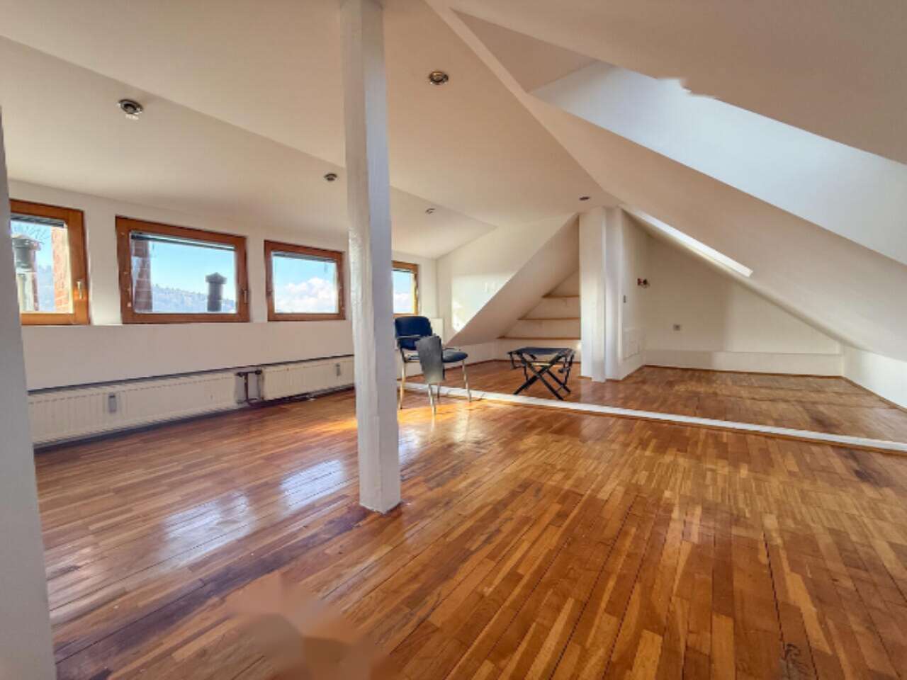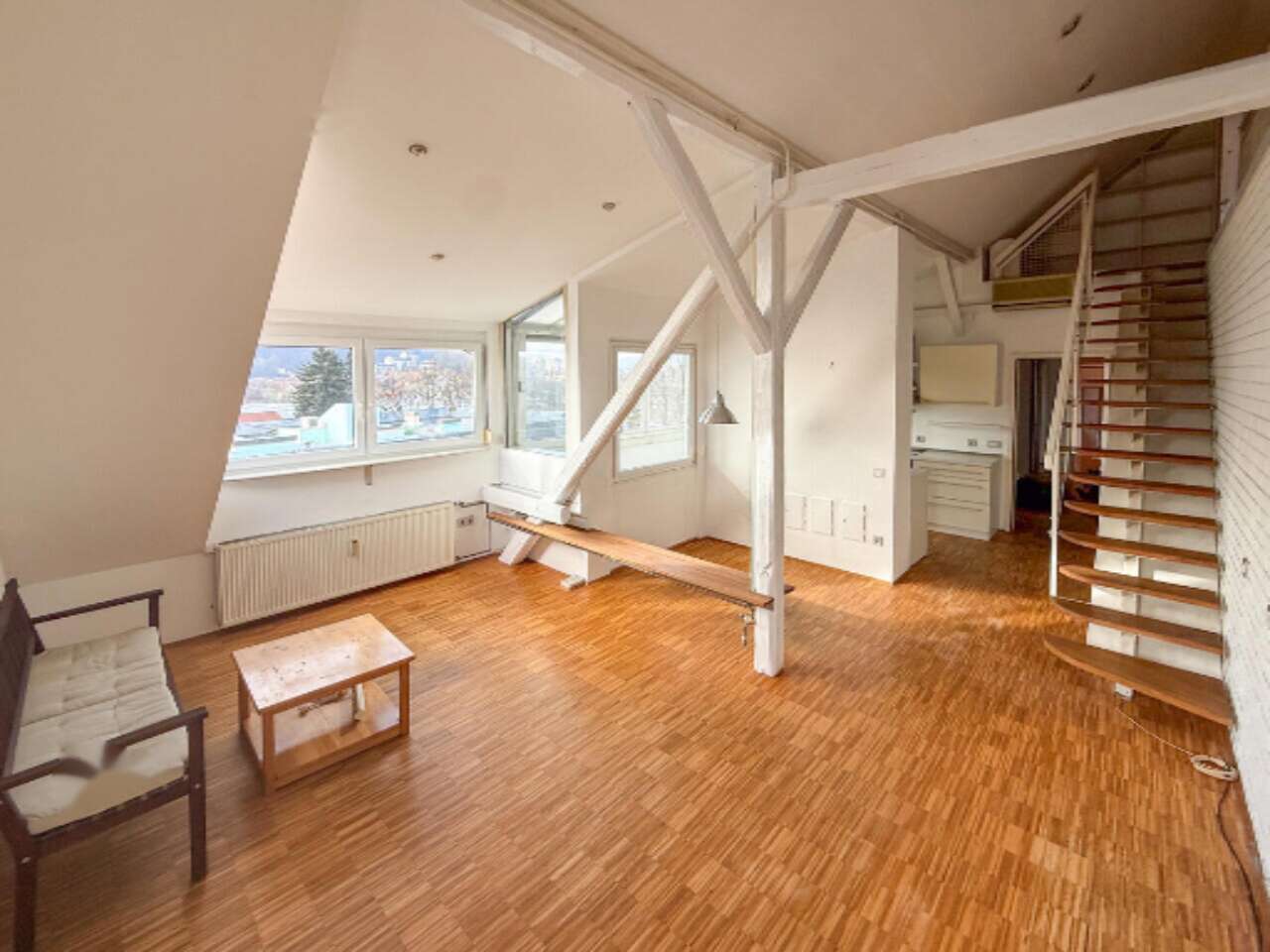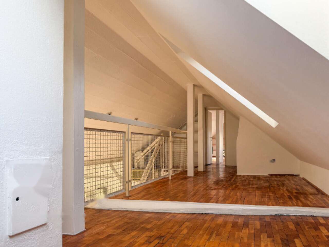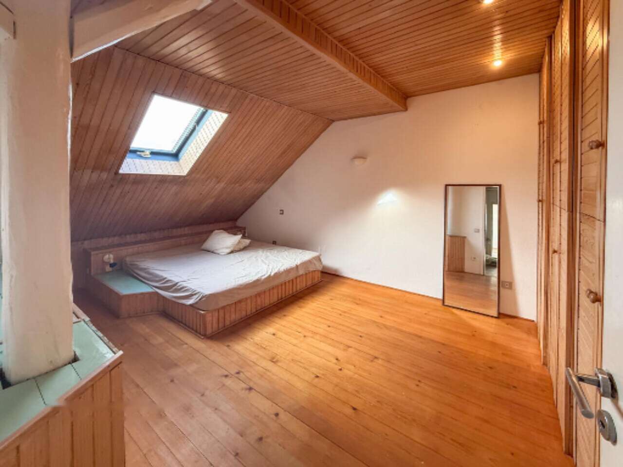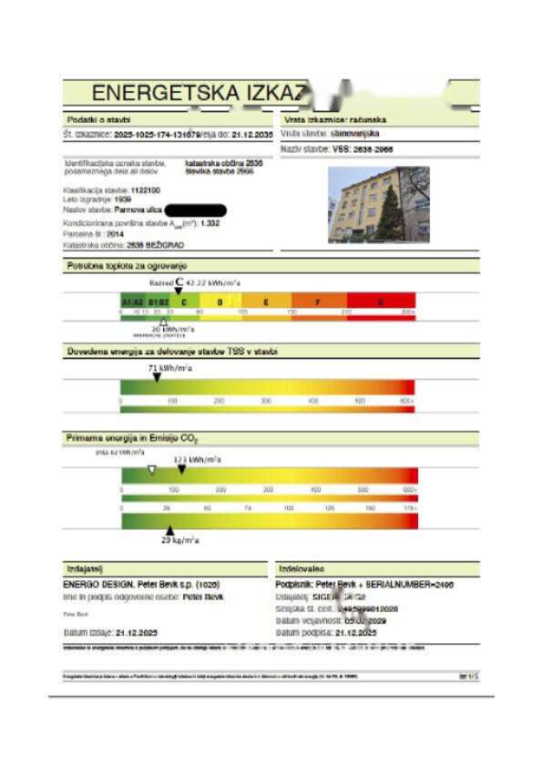 Просторная и светлая мансардная квартира-дуплекс, располагающаяся на четвертом этаже здания с историей на улице Пармова в районе Бежиград, Любляна, ждет своих владельцев. С общей площадью 136,5 м² и построенная в 1939 году, эта резиденция, отреставрированная в 2013 году, сочетает в себе современный комфорт и классический шарм.