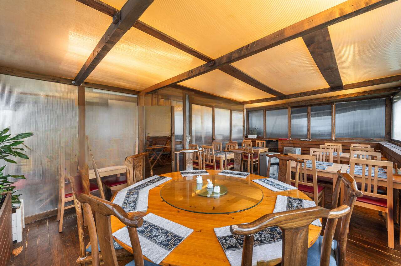 На первом этаже находятся кухня, бар, туалет и зона для клиентов. Также перед рестораном расположена крытая беседка с арендуемыми у города столами.