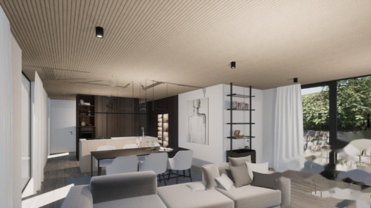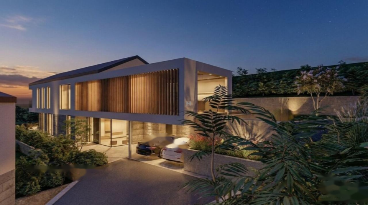 Жилая площадь дома составляет 222 м², а участок занимает 713 м². В подвале вас ждёт велнес-зона с турецкой и финской саунами, джакузи и технические помещения. На первом этаже расположены главная спальня, две дополнительные спальни с выходом на террасу, кабинет и уютная гостиная, объединённая с кухней и обеденной зоной. Большие стеклянные перегородки не только открывают потрясающие виды, но и щедро наполняют комнаты естественным светом. Из дома можно выйти на обширную крытую террасу с перголой и персональным бассейном.