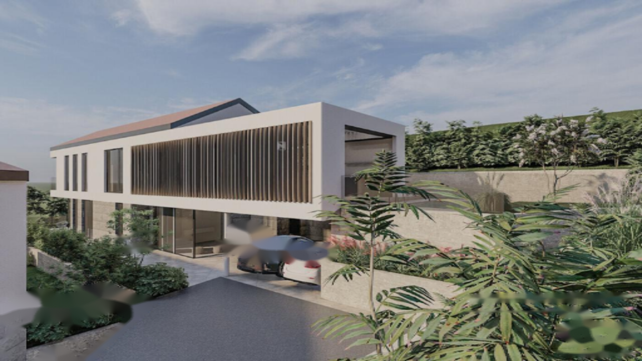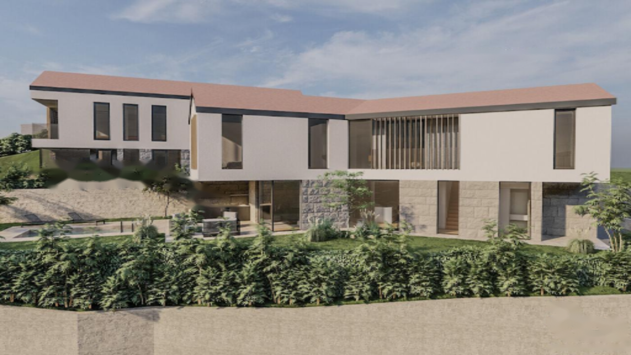 Архитектурные решения виллы сочетают элементы модерна и средиземноморского стиля. Низкая скатная крыша придаёт дому уютный вид. Белые стены с акцентами из дерева и камня гармонично вписываются в окружающий ландшафт.
