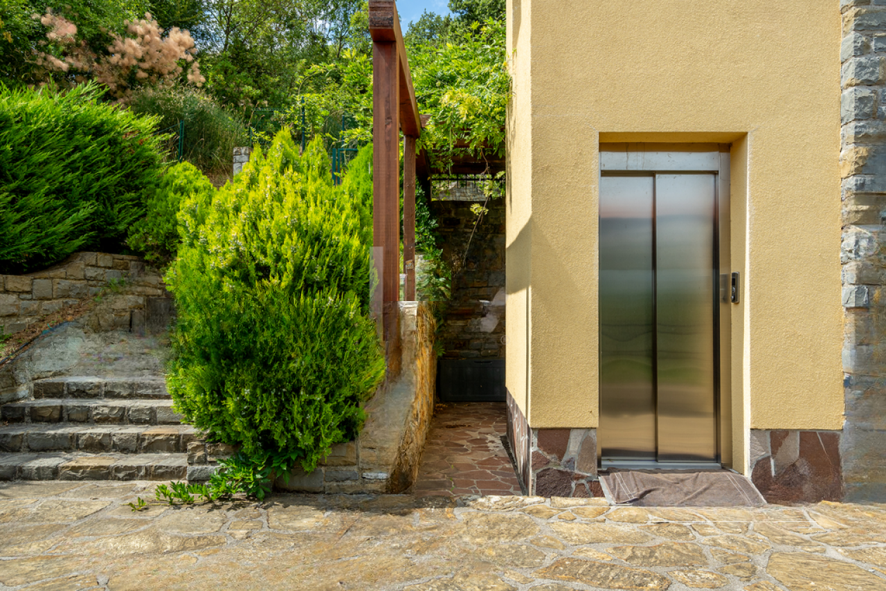 Вся территория огорожена и оборудована системами видеонаблюдения и охранной сигнализации. В домах предусмотрено кондиционирование воздуха (установлено 8 кондиционеров) и отопление при помощи теплового насоса с теплым полом. Внутри дома стоят лестницы и лифт для удобства передвижения. Все коммуникации подключены: телефонная линия, водоснабжение и электричество. Удобный подъезд с общественной дороги облегчает перемещение.