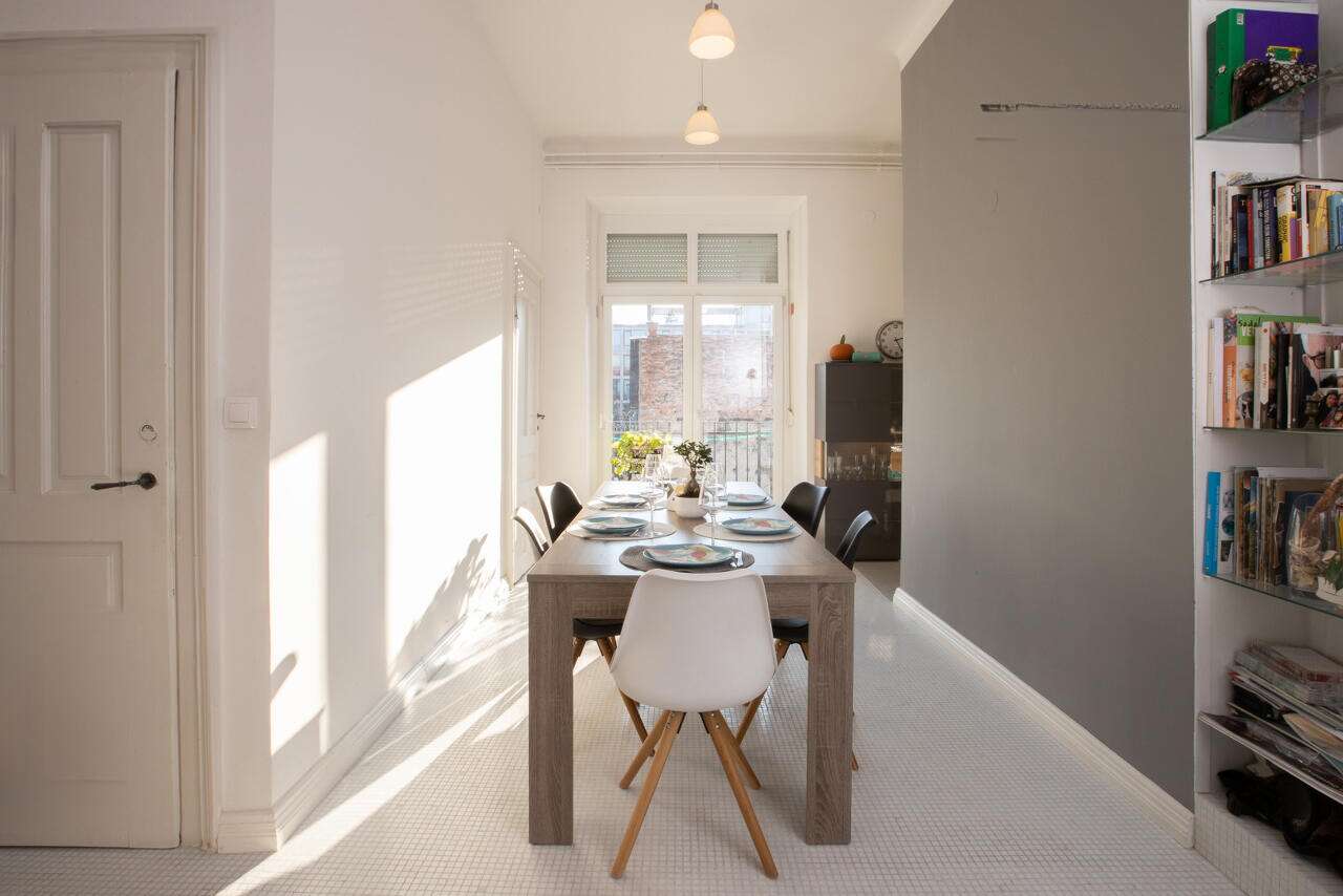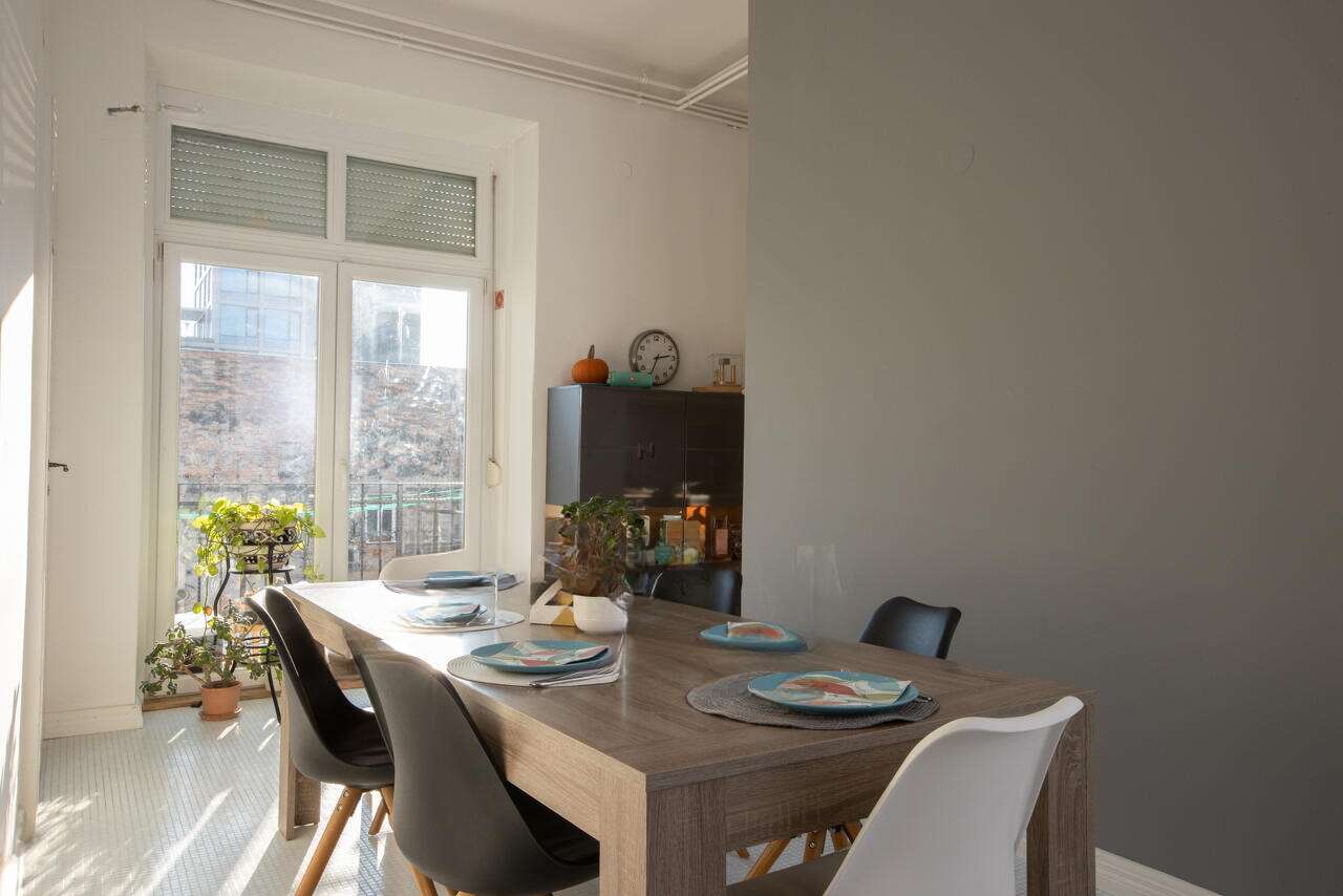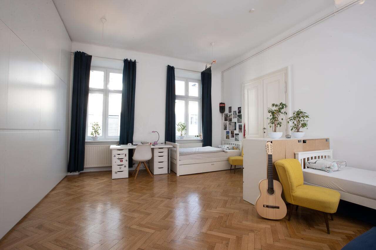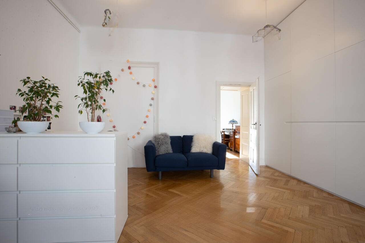 Квартира выделяется своим уникальным дизайном с потолками высотой 3,45 метра, залитыми естественным светом, и впечатляющим видом на часть Люблянского замка. Здесь обновлены вся электрическая и водоснабжающая системы, установлены новейшие окна, а внутренние стены получили новую жизнь. Противовзломные двери, выполненные в антикварном стиле, добавляют шарм этому жилищу.