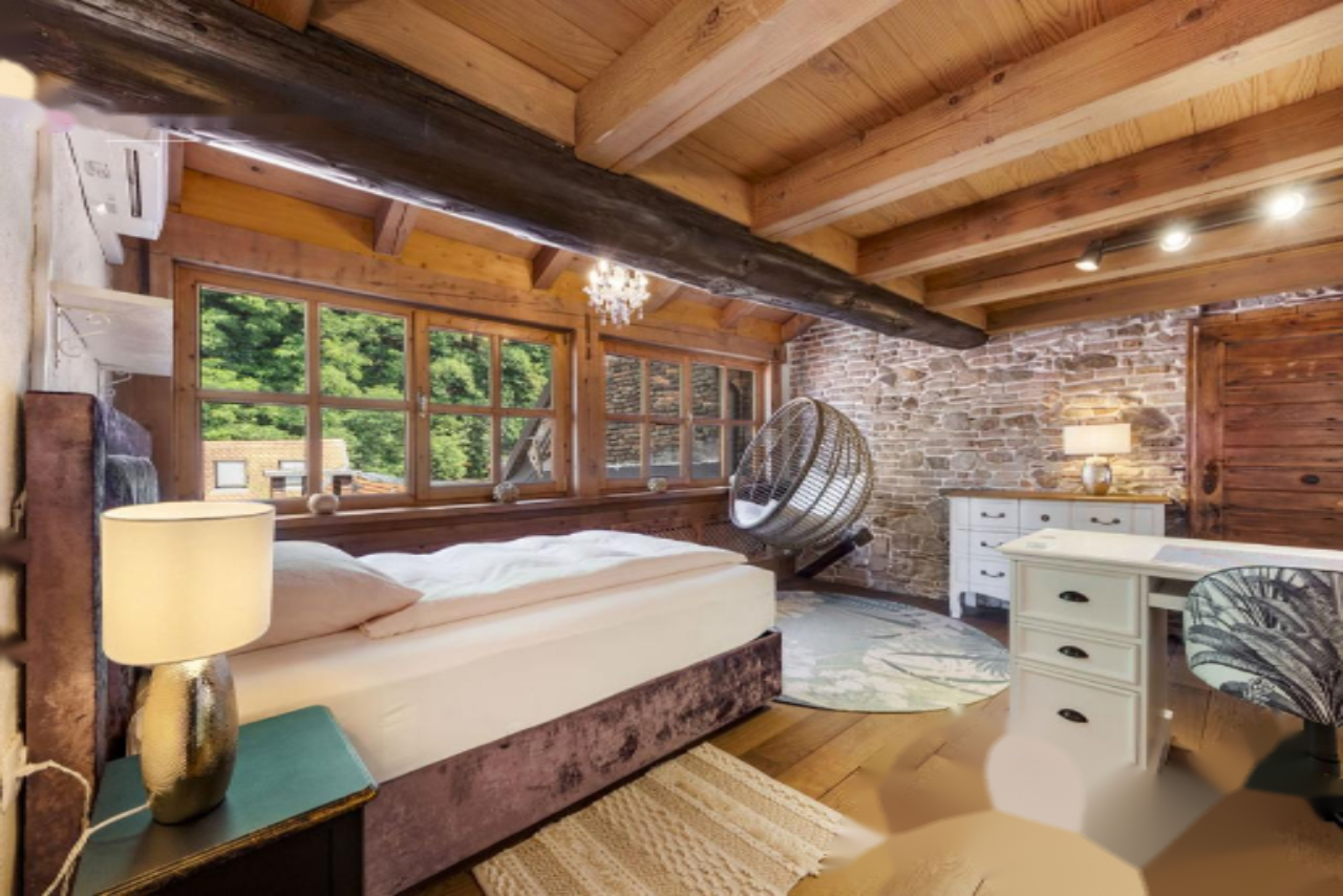 Профессионально оформленный интерьер гармонично объединяет современные декоративные мотивы и традиционные материалы, такие как оголенные каменные стены и деревянные балки. Несмотря на историческую атмосферу, апартаменты полностью адаптированы к современным условиям, предоставляя газовое отопление и три кондиционера для комфорта в любое время года. В будущем планируется установка лифта для дополнительного удобства.
