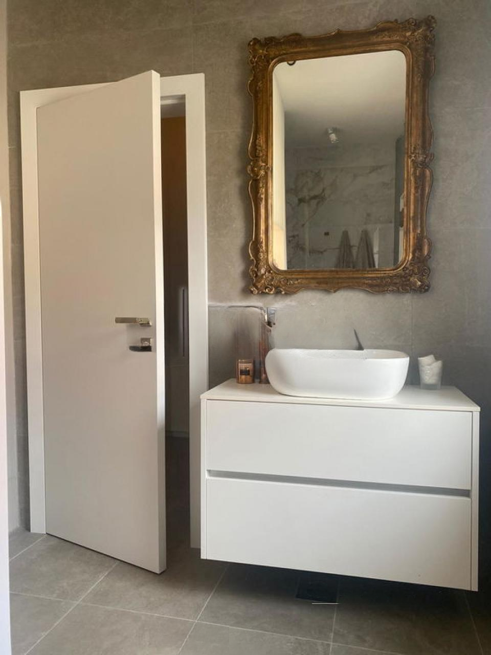Интерьер стал олицетворением минимализма и практичности. Благодаря окнам, выходящим на все стороны света, комнаты залиты естественным светом. Особого внимания заслуживают обширная ванная комната с душем и отдельный туалет, предоставляющий дополнительный комфорт. Из столовой ведет выход на уютный балкон, где открывается вид на природные красоты.