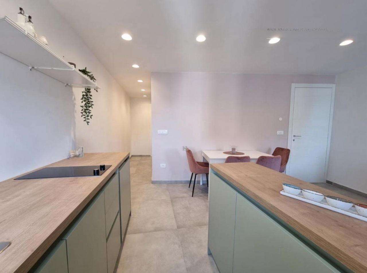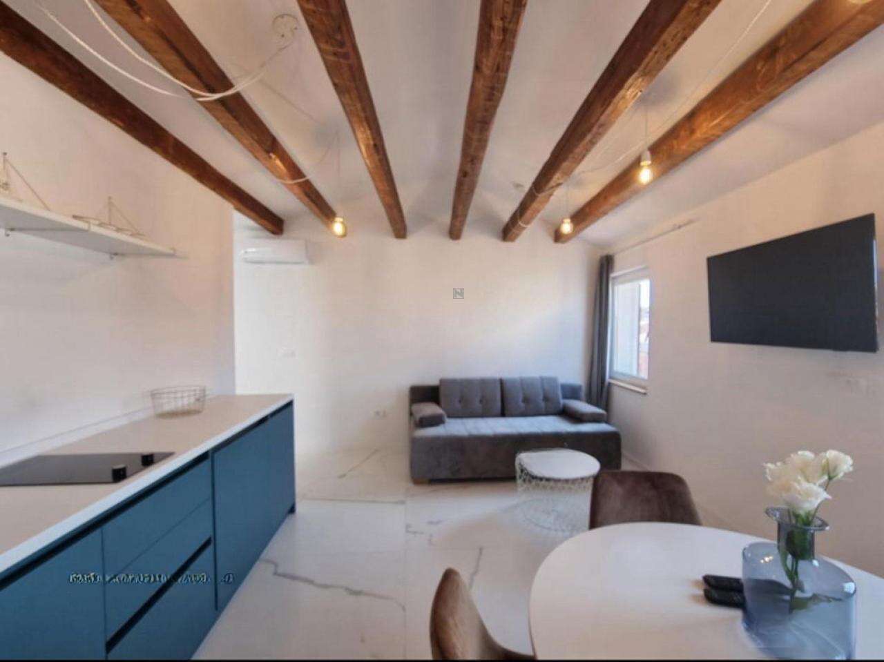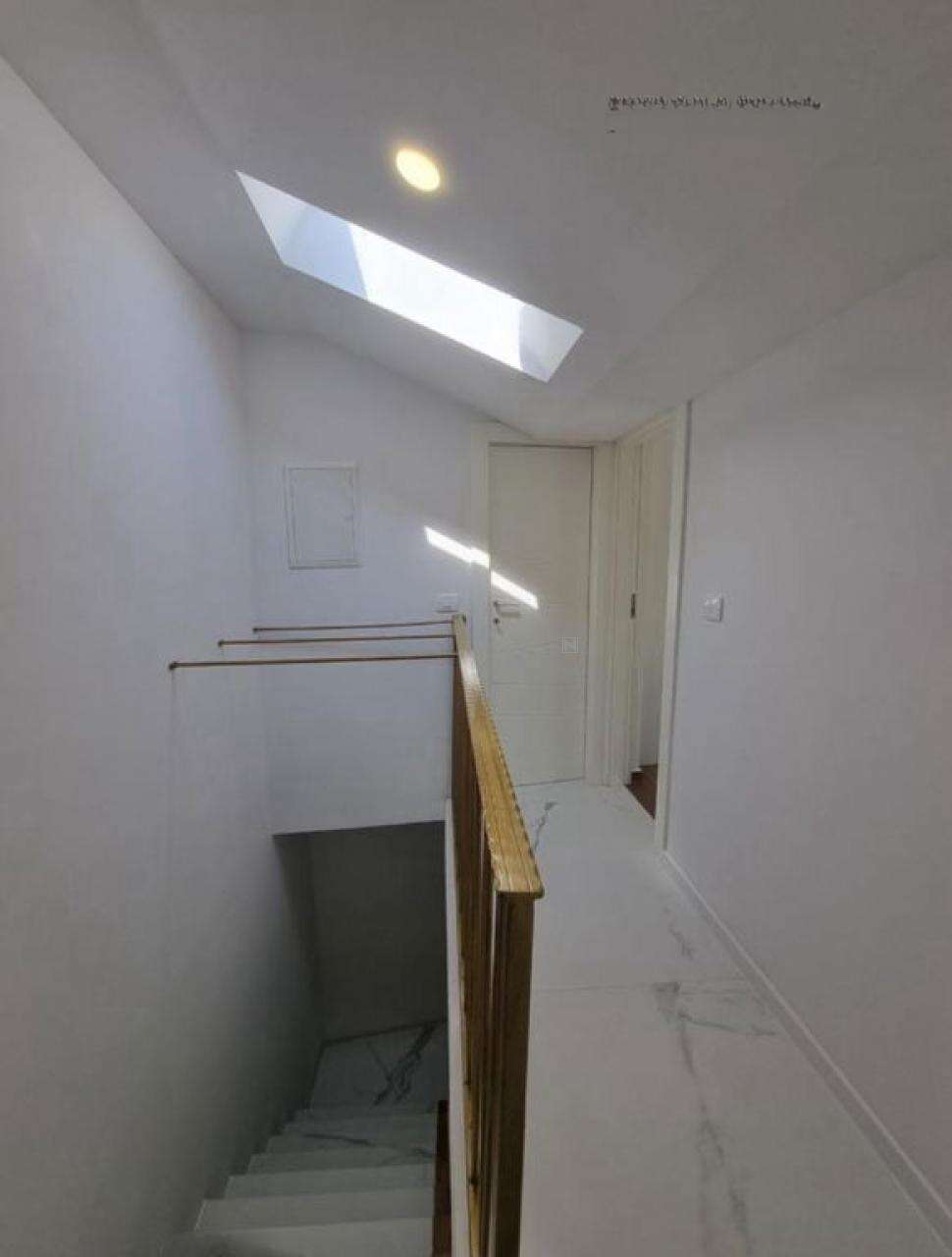 - На третьем этаже расположена первая квартира плoщадью 45 м², в которой просторная гостиная с кухней открывает восхитительный вид на Пиранскую гавань. Также здесь есть большая ванная и спальня с выходом на личную террасу.