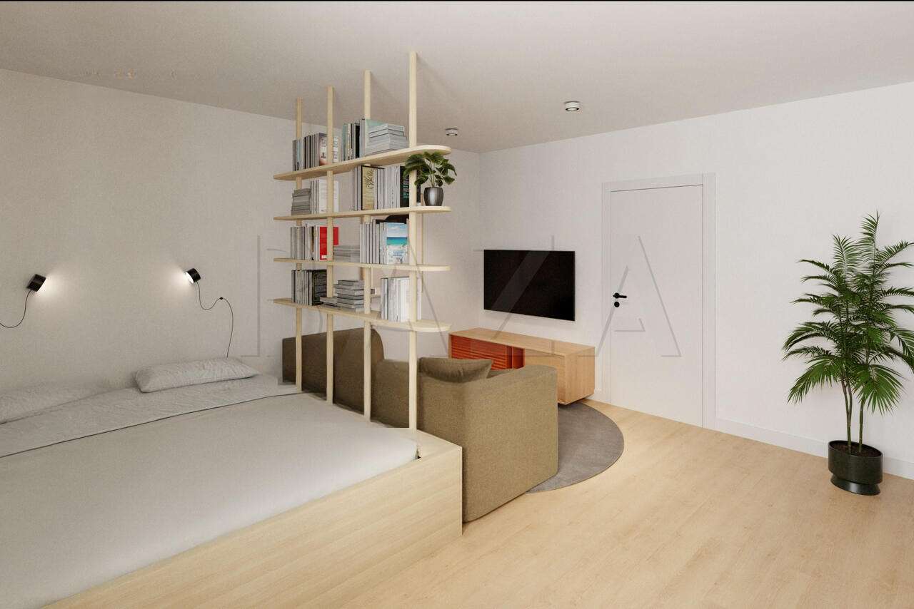 Просторное и удобное распределение комнат включает в себя прихожую, кухню с обеденной зоной, ванную и большую гостиную, что позволяет легко выделить зону для спальни. Владелец также получает в распоряжение вместительное подвальное помещение, общие зоны хранения для велосипедов и сушильную комнату. Внутри здания есть доступ к зелёному дворику, где каждому жильцу выделен участок для выращивания овощей или декоративных растений. Перед домом имеется парковка.