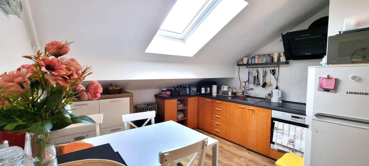 Основные достоинства этой недвижимости - это продуманная планировка и умелое использование пространства. На жилую площадь приходится 27,3 м², к которым добавляется 2,7 м² балкона с видом на запад и на гавань Порторож, а также кладовая на 4,3 м². Кроме того, под крышей предусмотрено пространство под наклоном площадью 5,5 м², что значительно расширяет функциональность и простор квартиры.