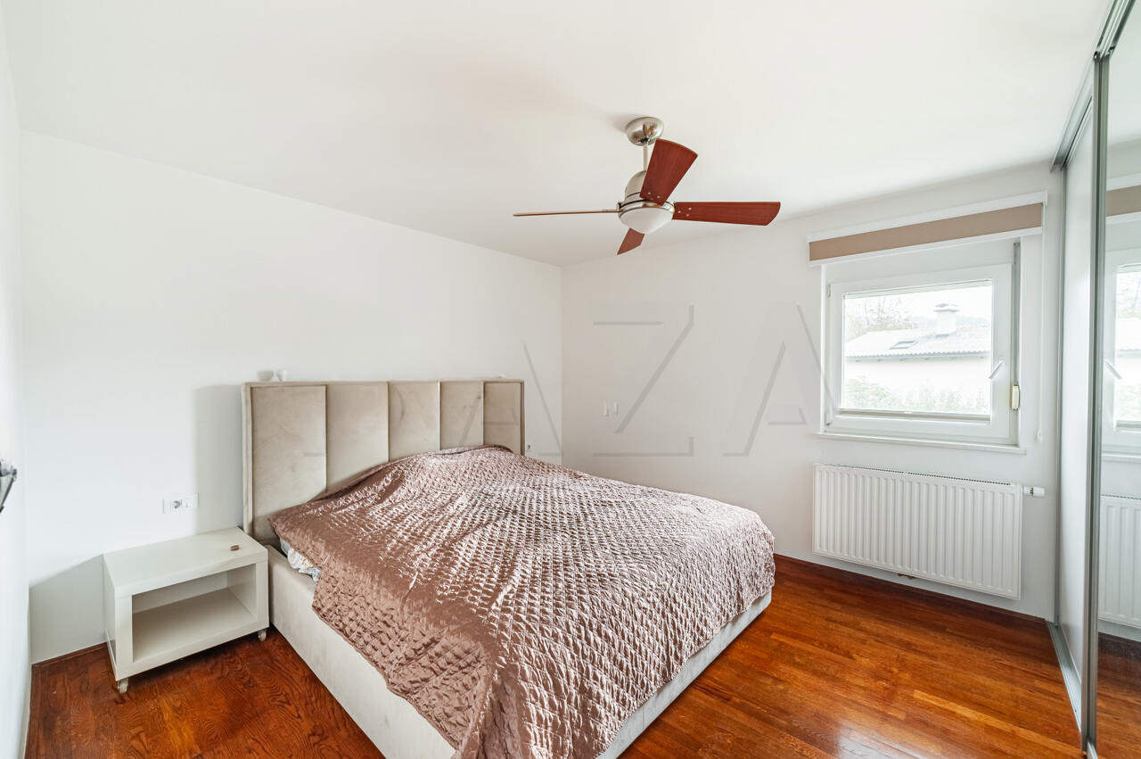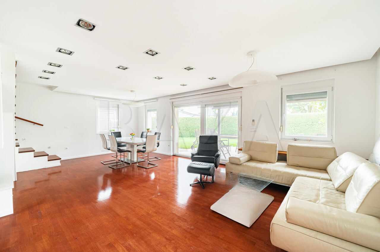 В продаже современный просторный одноэтажный дом, находящийся в тихом и благоустроенном районе Чрнуче, Любляна. Построенный в 2011 году, дом состоит из трех уровней и имеет общую площадь в 186 м². Приватный земельный участок размером 313 м² позволяет удобно разместить несколько автомобилей.