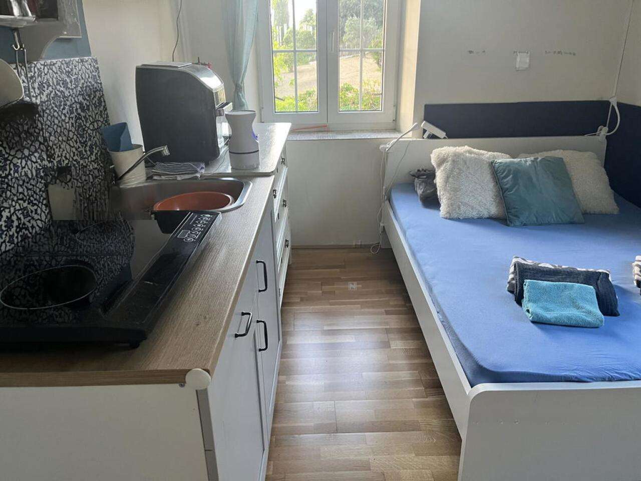 - Состоит из двух объединённых частей: основная квартира с двумя спальнями, кухней, ванной и зоной отдыха занимает 70 м²; студия площадью 15 м² оснащена кухней, жилой зоной и ванной комнатой.
