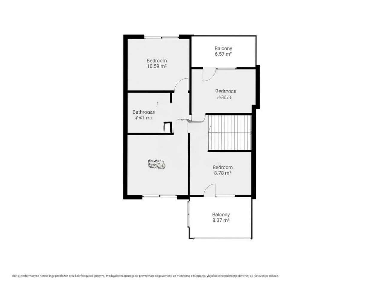 Подвал может служить местом для хранения вещей или проведения мероприятий. На первом этаже площадью 88,5 м² находятся спальня, ванная, гостиная, кухня с обеденной зоной, кладовая, техническое помещение, закрытая терраса и двор. Также имеется гараж, не подходящий для машины. На втором этаже с площадью 70,6 м² расположены три спальни, два балкона и ванная комната.