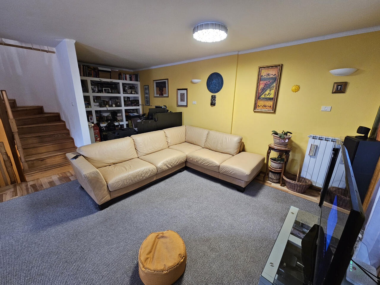 Этот крайний дом с террасой включает подвал, первый и второй этажи, а также мансарду, создавая условия для уютного проживания всей семьи. Планировка продумана до мелочей для удобства и функциональности: в подвале размещены кладовая, гардероб, котельная и ванная комната. На первом этаже расположена просторная гостиная с обеденным пространством, кухней и небольшим офисным уголком. Второй этаж предлагает две спальни с отдельными выходами на балкон, ванную и кабинет, который может быть преобразован в детскую комнату. Мансарда обустроена как просторная спальня с рабочей зоной для компьютера.