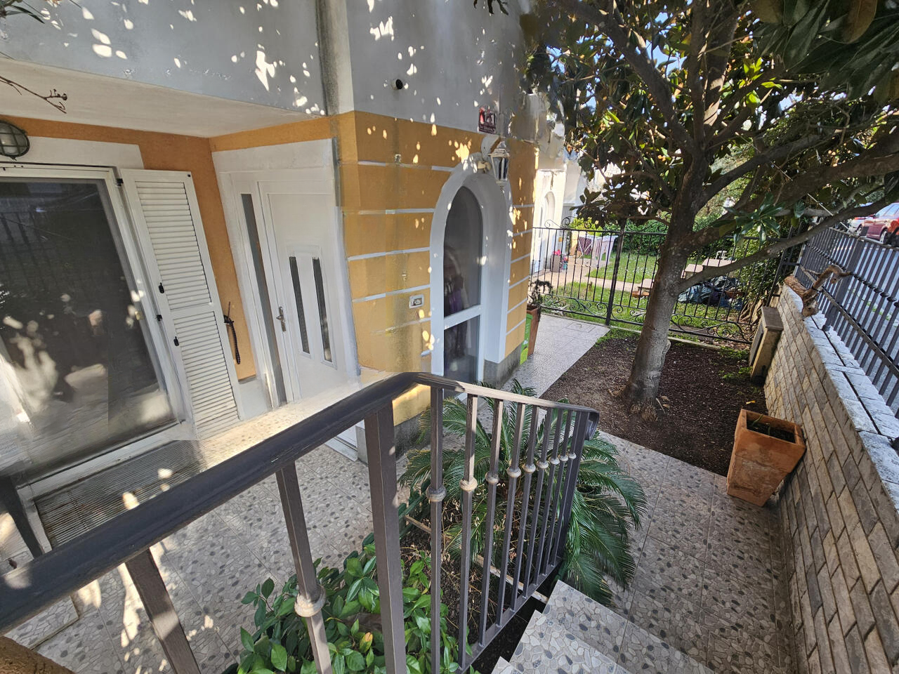 Дом дополнен небольшим приватным двором и имеет три парковочных места. Благодаря южной ориентации можно наслаждаться частичным видом на море, до которого всего 1 км, позволяя использовать природные ресурсы для отдыха и здоровья. Отопление осуществляется на мазуте с дополнением электричеством и кондиционером, установлены радиаторы и противопожарные двери. Жилое пространство полностью меблировано для моментального въезда.