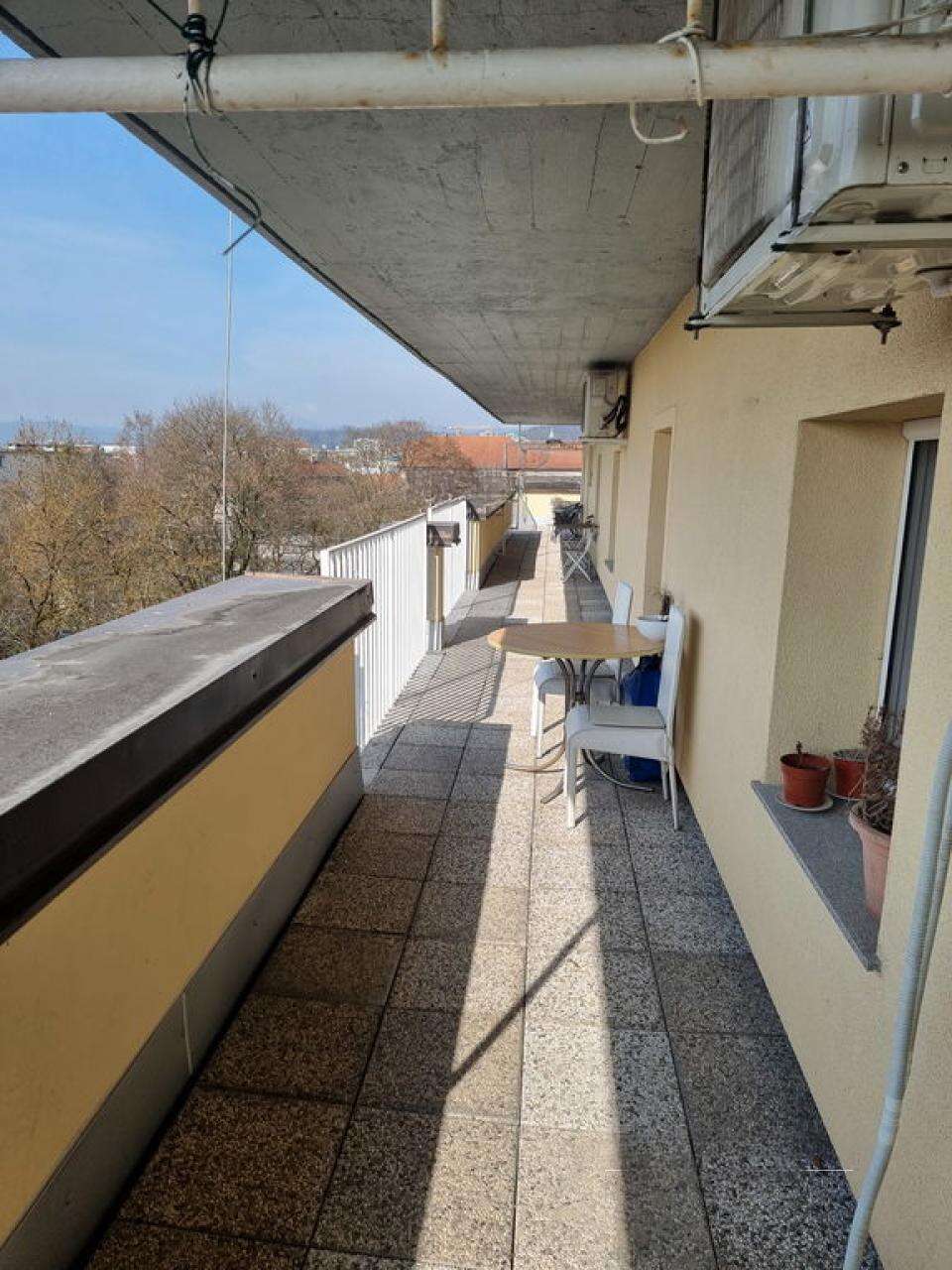 На улице Тесарска, в одном из самых живописных уголков Любляны — Пруле, на четвёртом этаже многоквартирного дома располагается привлекательная двухкомнатная квартира площадью 49,4 м². Ее окна предлагают захватывающий вид на стены Люблянского замка, а сам дом идеально сочетает близость городского центра с тишиной и спокойствием окружения.