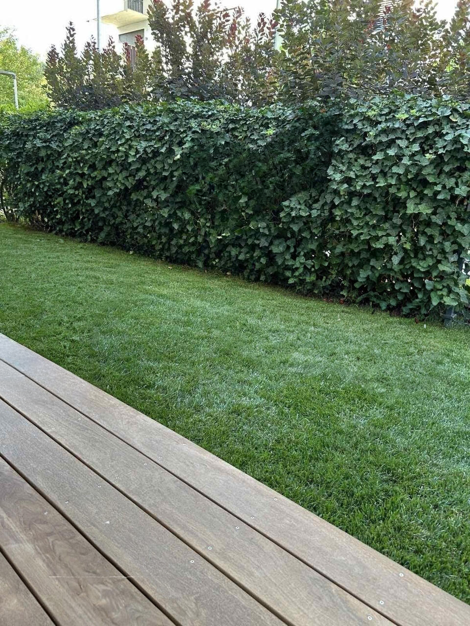 Частный атриум площадью 50 м² расширяет жилую зону, создавая атмосферу уюта. Деревянная терраса из тика и ухоженный газон делают его идеальным местом для отдыха и встреч с друзьями.