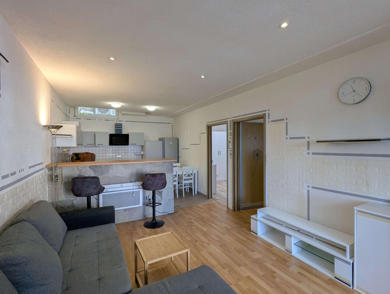 Пользуется отличной инфраструктурой: в шаговой доступности находятся детский сад, школа, удобный выезд на автомагистраль, а море всего в 850 метрах. Подойдет как для проживания, так и в качестве инвестиций. Квартира частично меблирована, снабжена системой кондиционирования и электрическим отоплением. Энергетический класс — E (105 - 150 кВтч/м² в год).