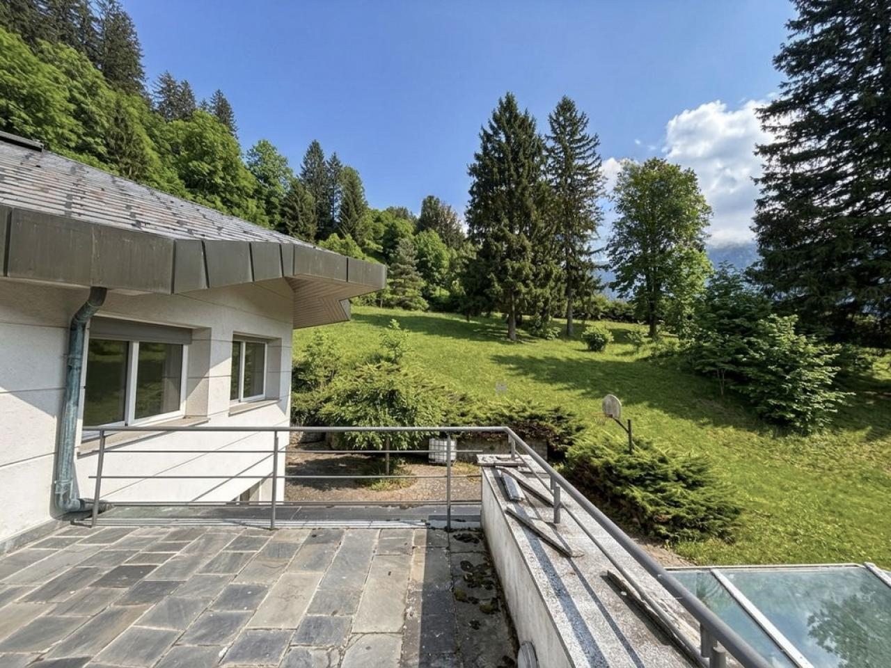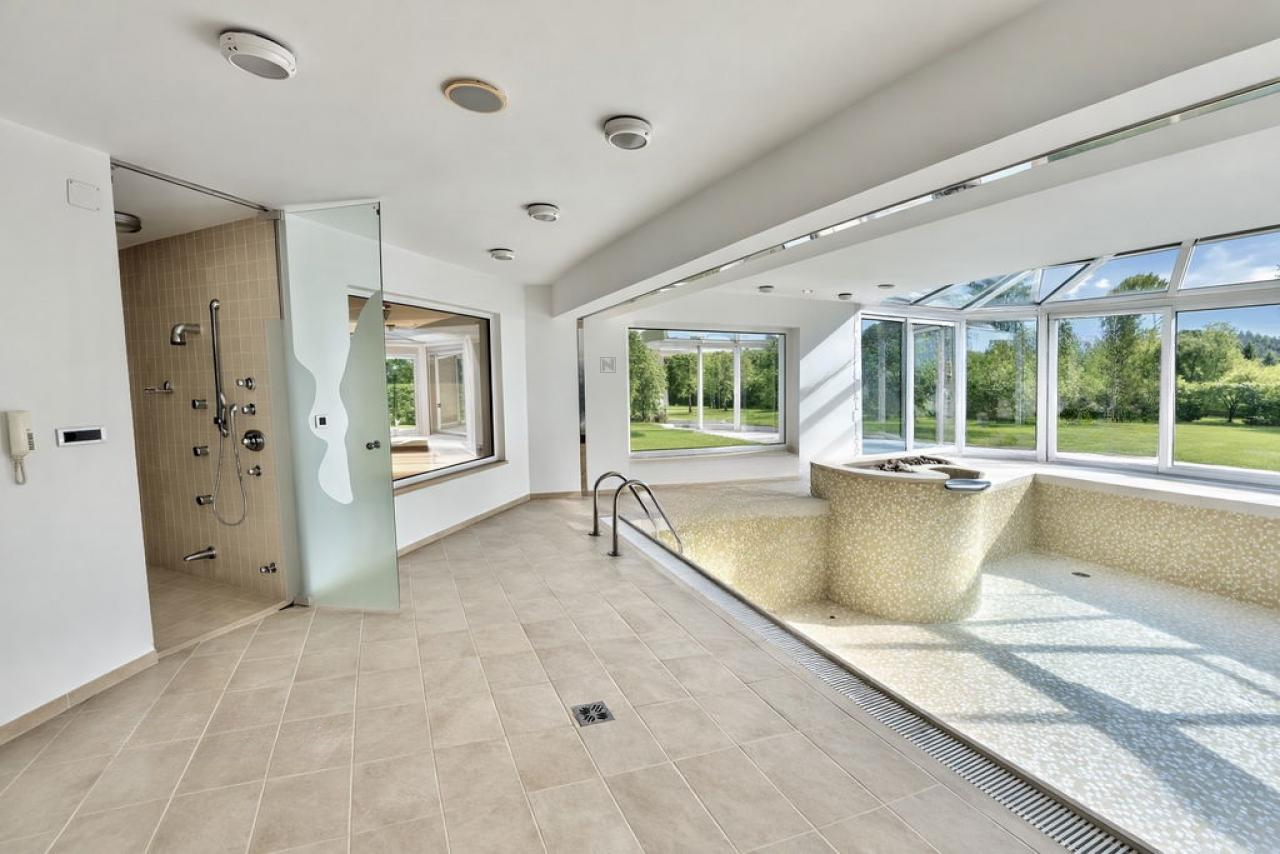 На территории располагается просторная вилла, возведённая в 1999 году, которой требуется современное обновление. Внутренние пространства дома светлые и свободные, с панорамными окнами, что позволяет наслаждаться природным светом и завораживающими видами. В числе особенностей объекта — крытый бассейн с лаунж-зоной и сауной, создающие условия для отдыха в любое время года.