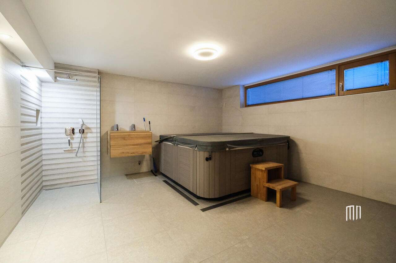 Дом оборудован тепловым насосом и системой теплого пола, имеется оптический интернет. Располагаясь в жилом районе с коттеджами, он прекрасно соединен с кольцевой дорогой. Удобное местоположение и доступность инфраструктуры – школы, детские сады, международное учебное заведение, университетские факультеты и магазины – делают это жилье максимально комфортным для жизни, сочетая все преимущества городской жизни с легким доступом к природе для активного отдыха.
