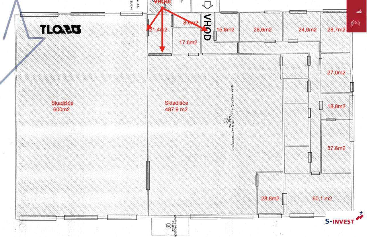 В северо-западной части Любляны, в районе Стегне, в бизнес-центре располагаются коммерческие помещения общей площадью 1 535,9 м². Они находятся на первом этаже постройки 1986 года.