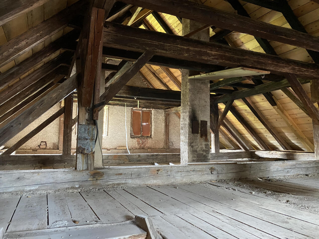 Дом был построен в 1910 году, а его крыша заменена в 2016 году. Для создания условий комфортного проживания необходимо провести обновления. На участке площадью 757 м² здание предлагает 135 м² жилой площади на первом этаже и 145 м² на втором этаже. Рядом находится дополнительное хозяйственное строение, включающее сенницу, подвал и хлев.