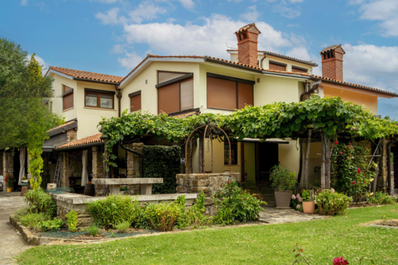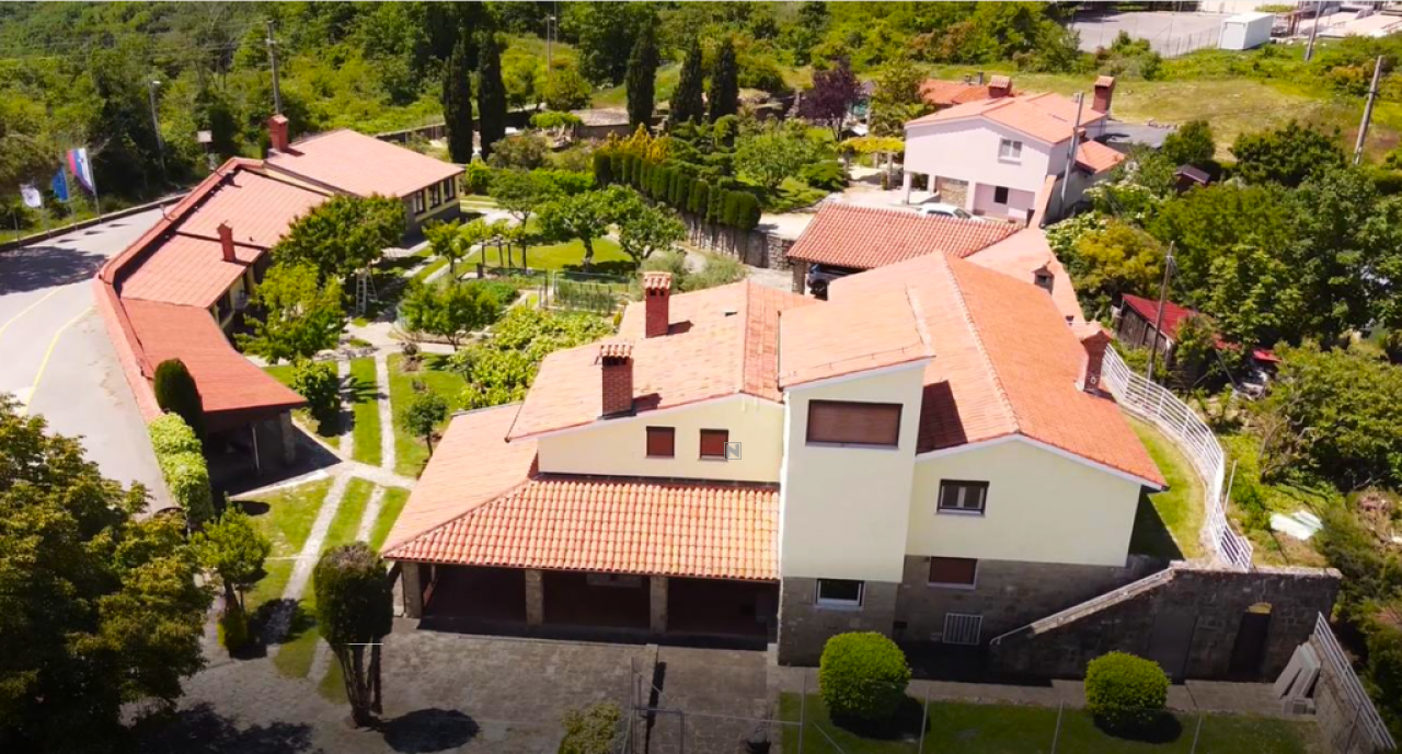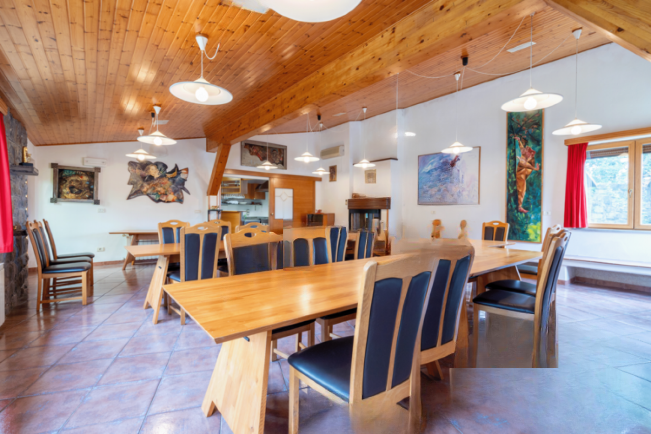 На продажу выставлен просторный одноэтажный дом, расположенный в живописном месте рядом с деревней Помян. Это здание возведено в 1987 году и прошло полную реставрацию в 2020 году. Участок земли размером 2321 м² окружен каменной стеной и предлагает уникальные возможности для использования, в том числе отдельный коммерческий объект, которым раньше был ресторан.