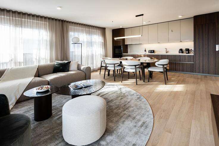 Комплекс утопает в зелени, доступной только для его жителей, что создает ощущение уединённой жизни. "Бежиграйская пятка" предлагает ограниченное количество квартир, благодаря чему обеспечивается высокий уровень жизни и приватность, которые превосходят стандартные ожидания планирования. Главные зоны квартиры освещены и просторны, вдохновляя на общение, тогда как спальни обособлены для обеспечения комфорта. В отделке и оборудовании были использованы материалы и оборудование высокого класса, что делает жильё и функциональным, и эстетически привлекательным.