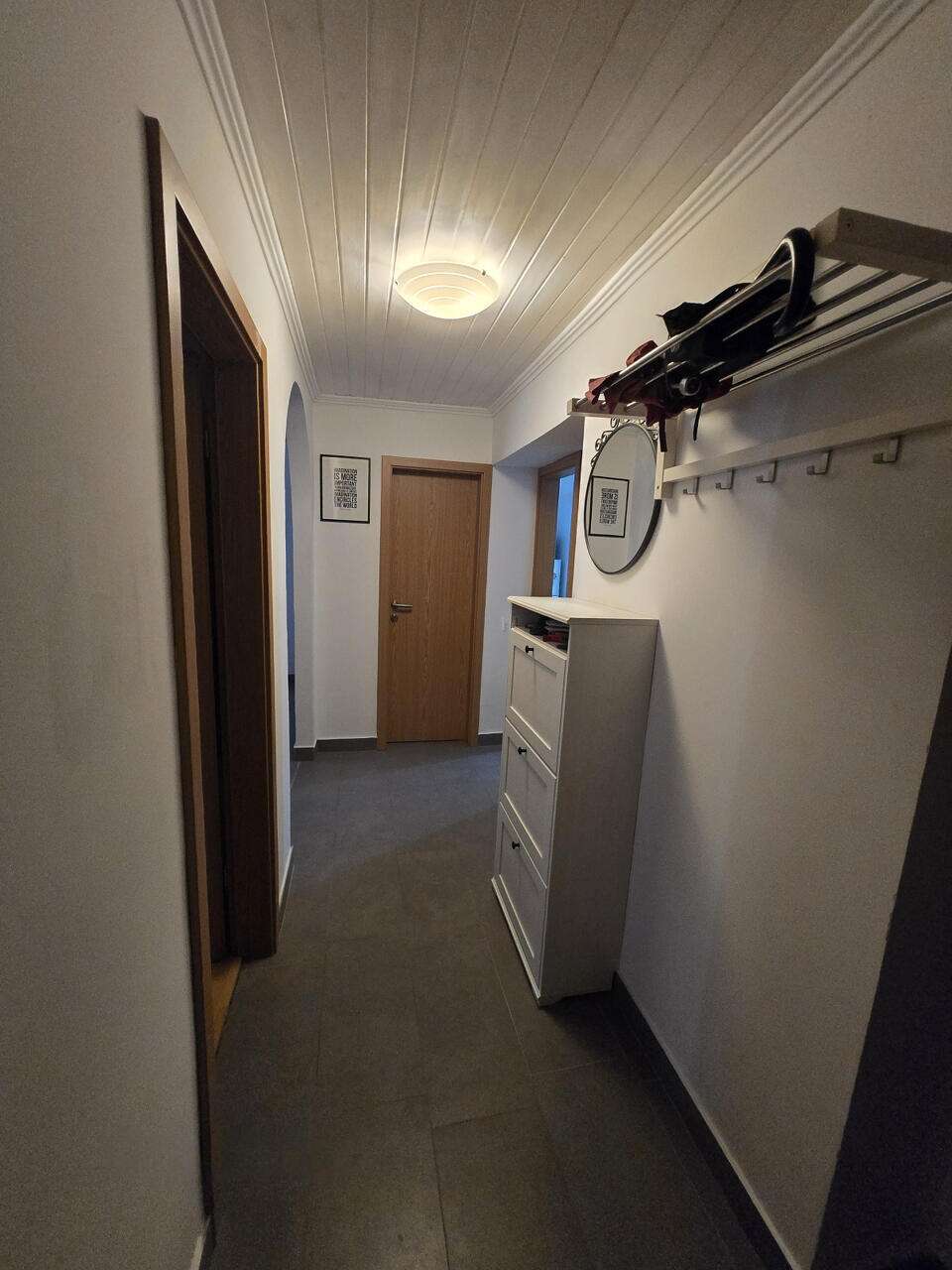 Приятным дополнением является собственный подвал площадью около 9 м², который предоставляет дополнительную возможность для хранения вещей. Общая площадь квартиры — 74 м², учитывая подвал. Жилье полностью меблировано и готово к заселению без задержек.