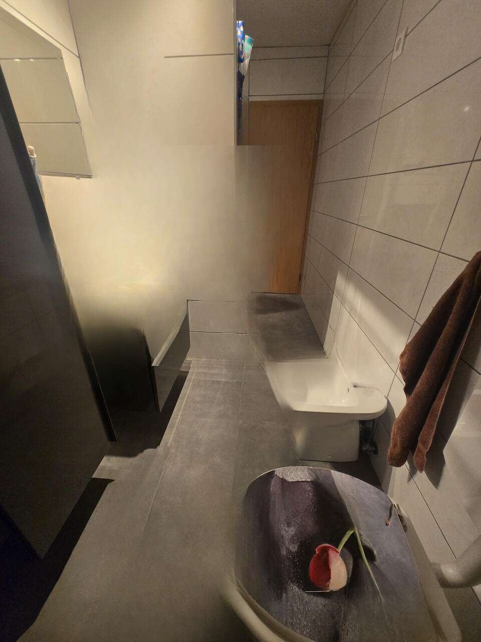 • Ванная комната с выходом на компактный закрытый балкон площадью приблизительно 2 м²
