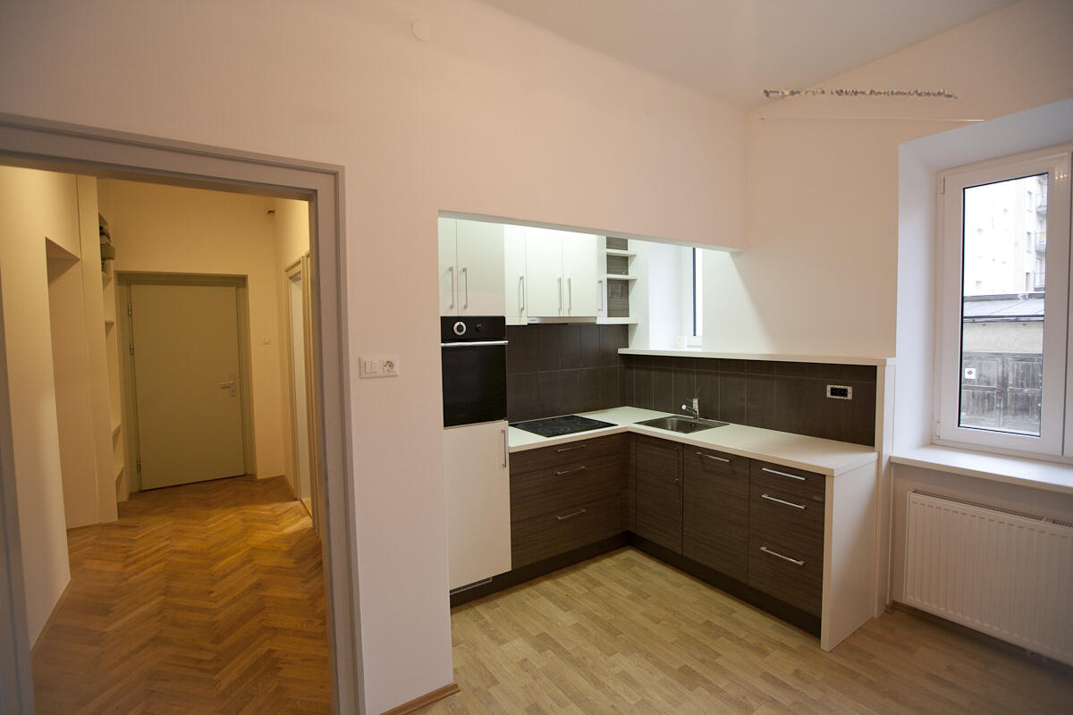 Квартира находится на возвышенном первом этаже из трех и имеет рациональное распределение пространства: просторная гостиная, изолированная кухня с местом для обедов, спальня, ванная изолирована от туалета. Каждый уголок квартиры доступен из коридора, где сохранился оригинальный паркет, придающий жилью уют и индивидуальность. В распоряжении жильцов также есть подвал для хранения.