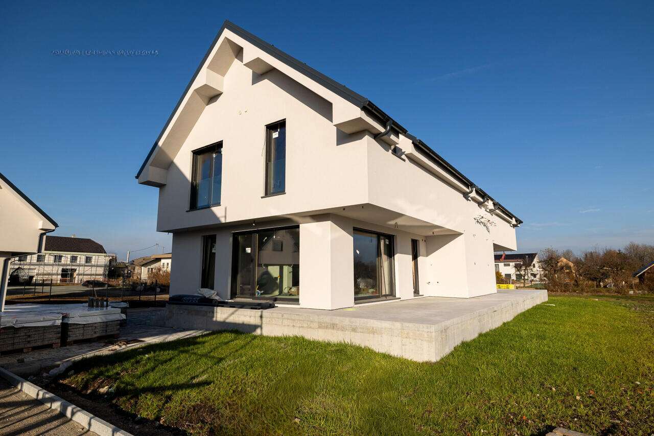 Современный просторный дом на две квартиры, площадью 127,7 м², разместился в живописном районе Чёрна-Вас, всего в нескольких минутах пути от популярного торгового центра "Супернова Рудник". К 2025 году, он будет сдан "под ключ" и возведён с использованием первоклассных материалов.