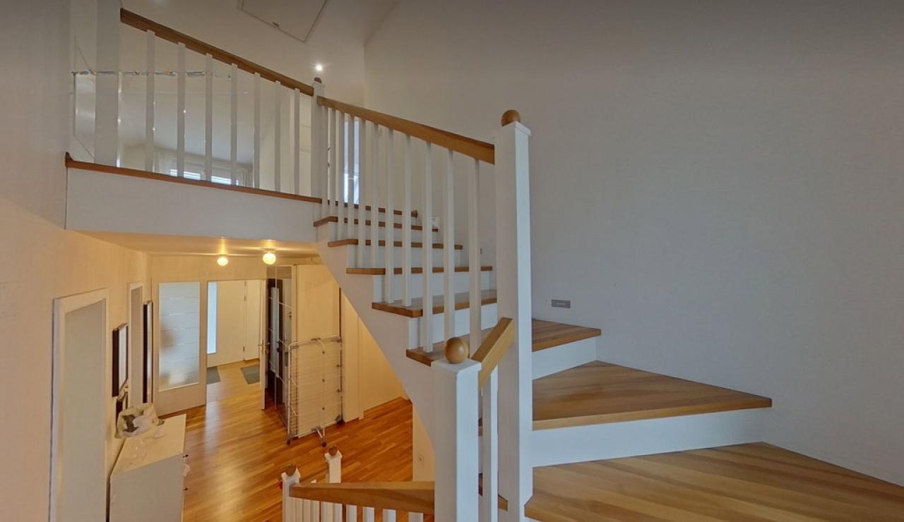 На продажу выставлен современный дом, возведённый в 2009 году, с жилой площадью 288,2 м². Он расположен на участке размером 609 м² в зелёной зоне окраины Любляны, в районе Бизовик - Хрушица, создавая отличные условия для комфортной жизни всей семьи.